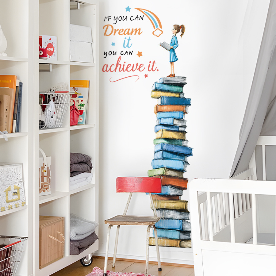 HS4021E "꿈을 가진다면 모든 것이 가능합니다" 영어 문구를 동기 부여하고 영감을 주는 자체 접착 학교 장식 벽 스티커스토어 가기