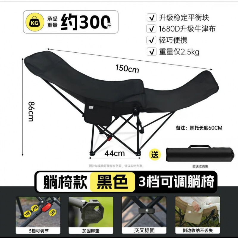 • [1380D 수입 옥스포드 천] + 수납가방 - 3단계 조절 [매트 블랙] 다리 지지대 없음 140도 큰 호 반 누운 펼쳐진 길이 95CM