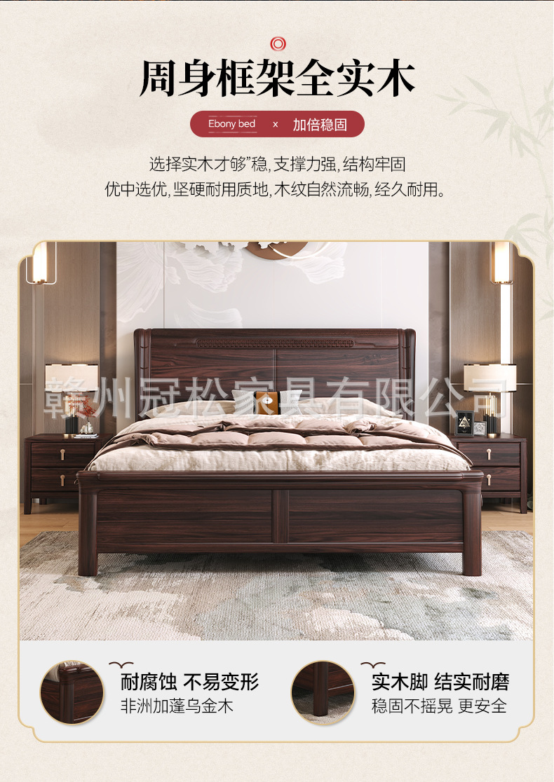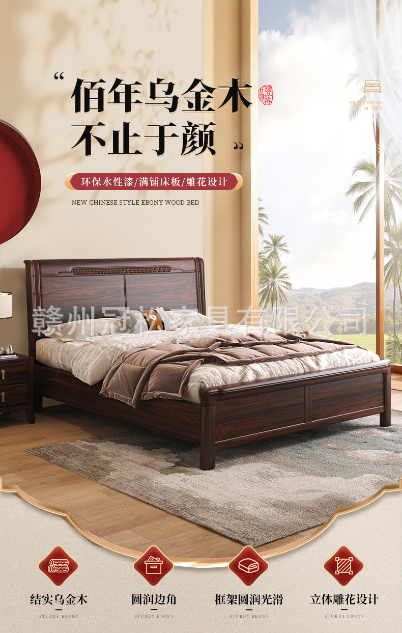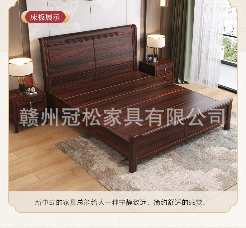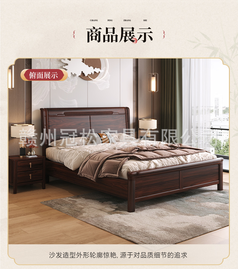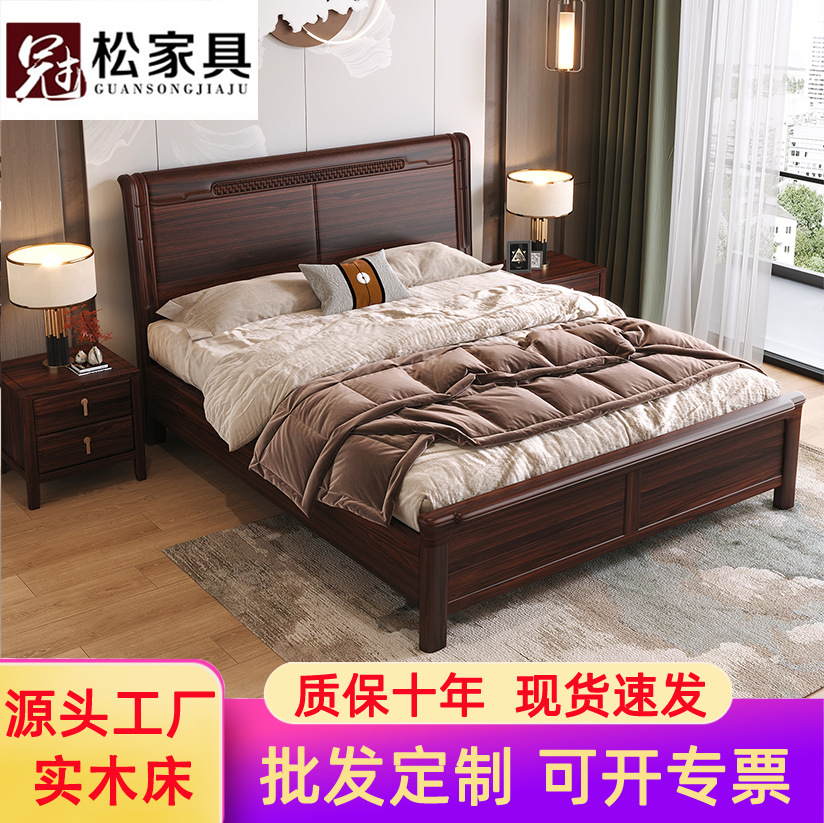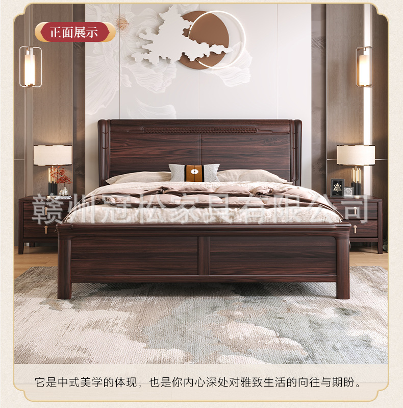 새로운 중국 스타일의 검은 나무 단단한 나무 침대 홈 단단한 나무 침대 침실 1.8m 침묵 더블 침대 라이트 럭셔리 스토리지 웨딩 침대스토어 가기