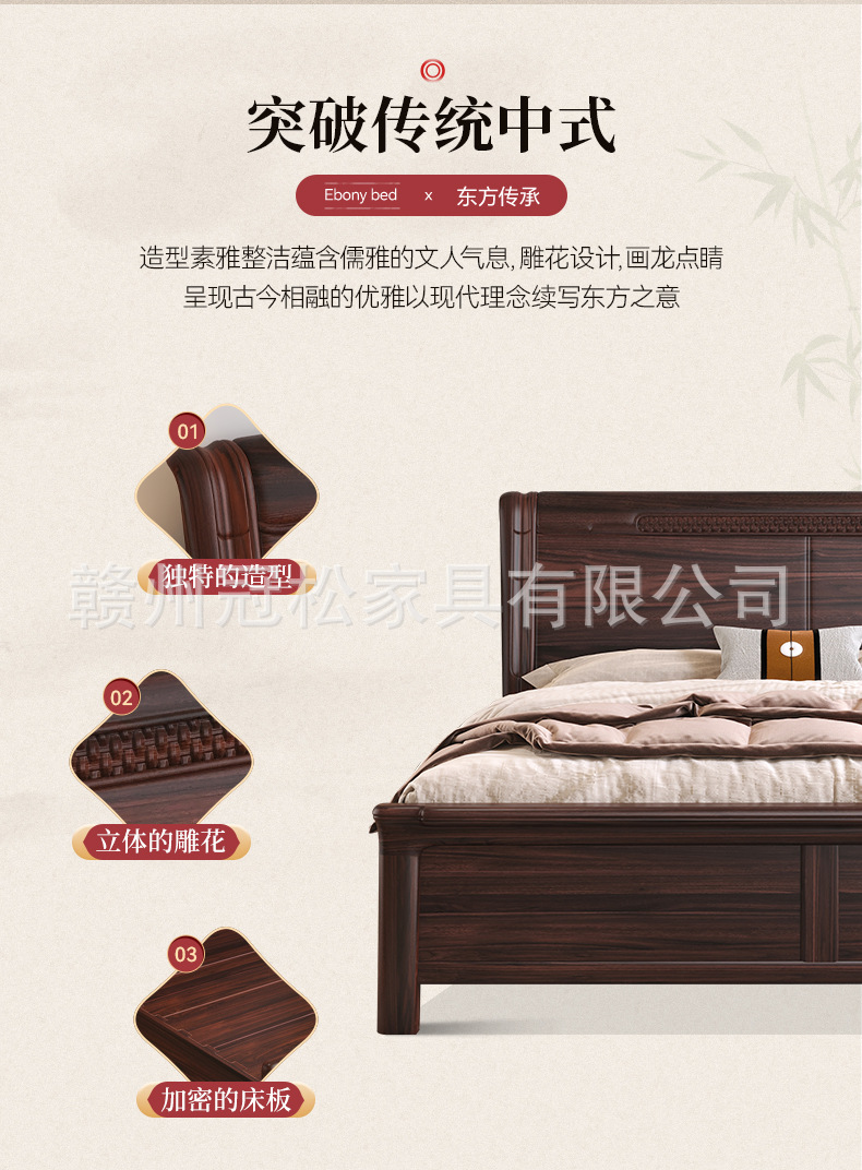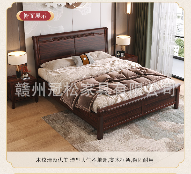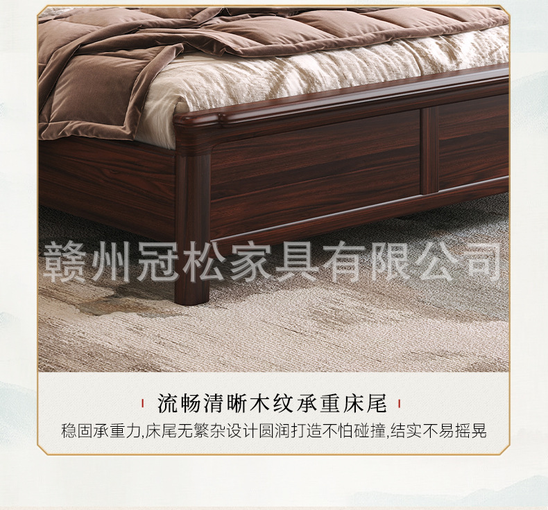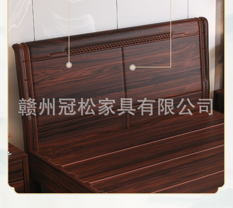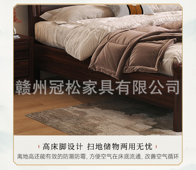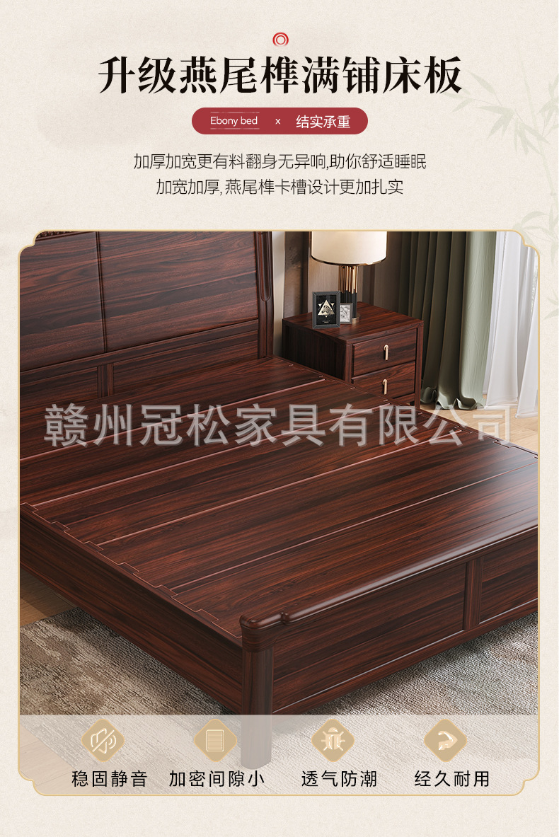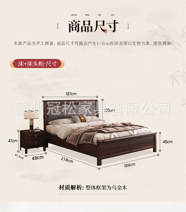 새로운 중국 스타일의 검은 나무 단단한 나무 침대 홈 단단한 나무 침대 침실 1.8m 침묵 더블 침대 라이트 럭셔리 스토리지 웨딩 침대스토어 가기