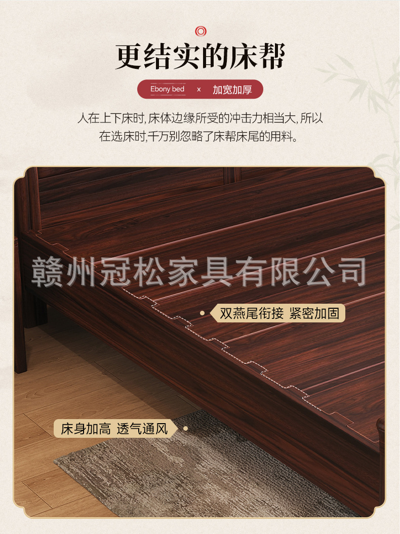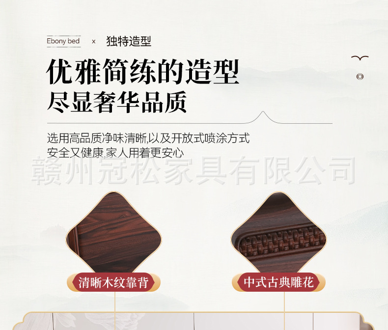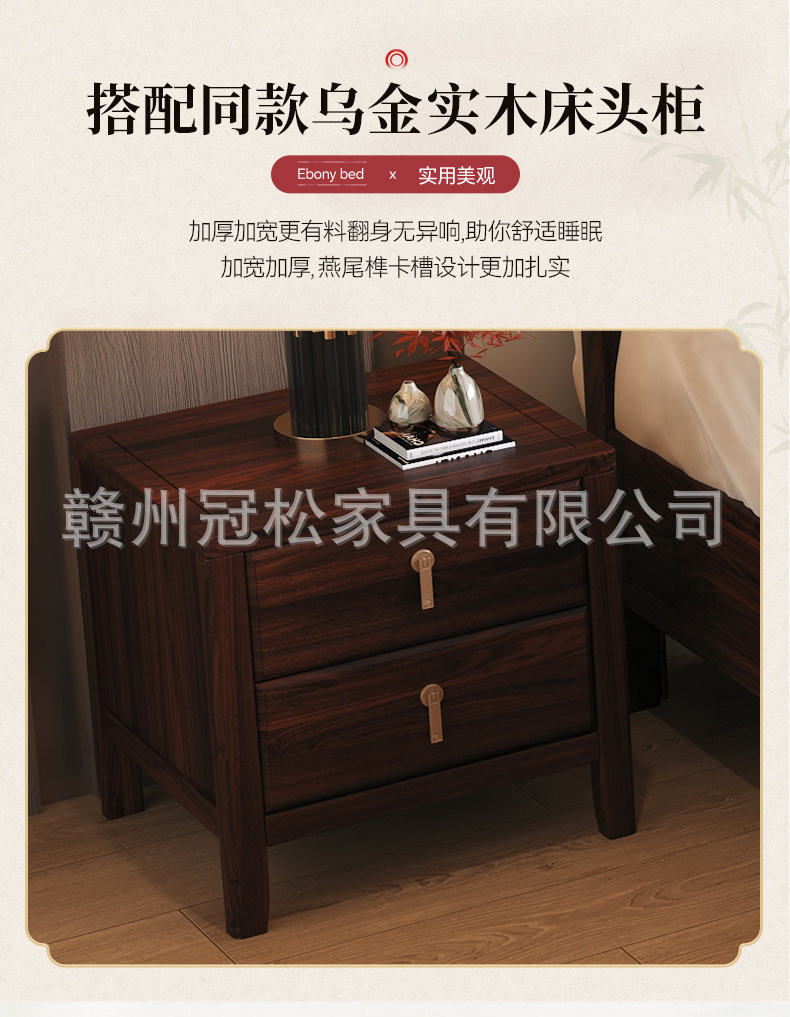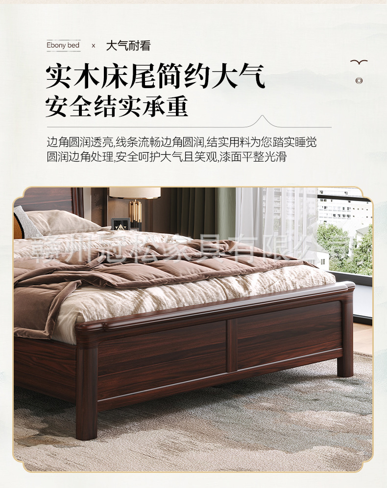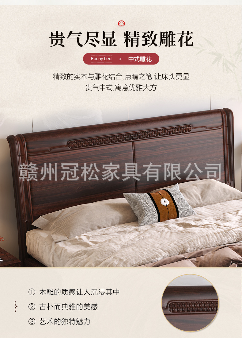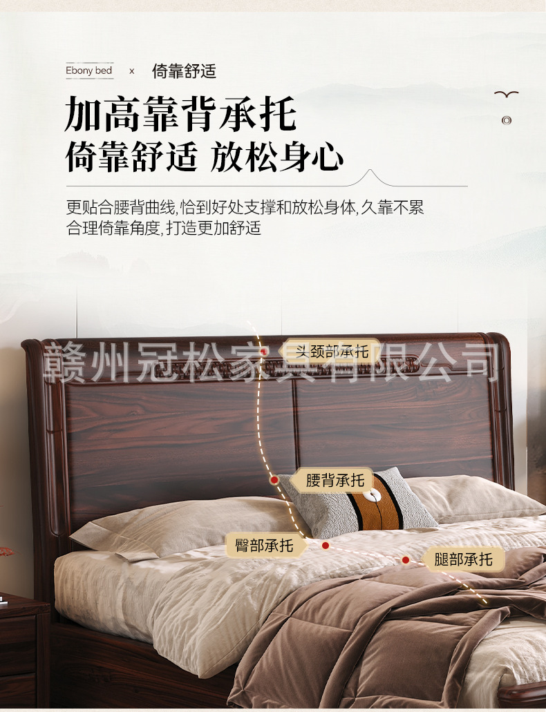 새로운 중국 스타일의 검은 나무 단단한 나무 침대 홈 단단한 나무 침대 침실 1.8m 침묵 더블 침대 라이트 럭셔리 스토리지 웨딩 침대스토어 가기