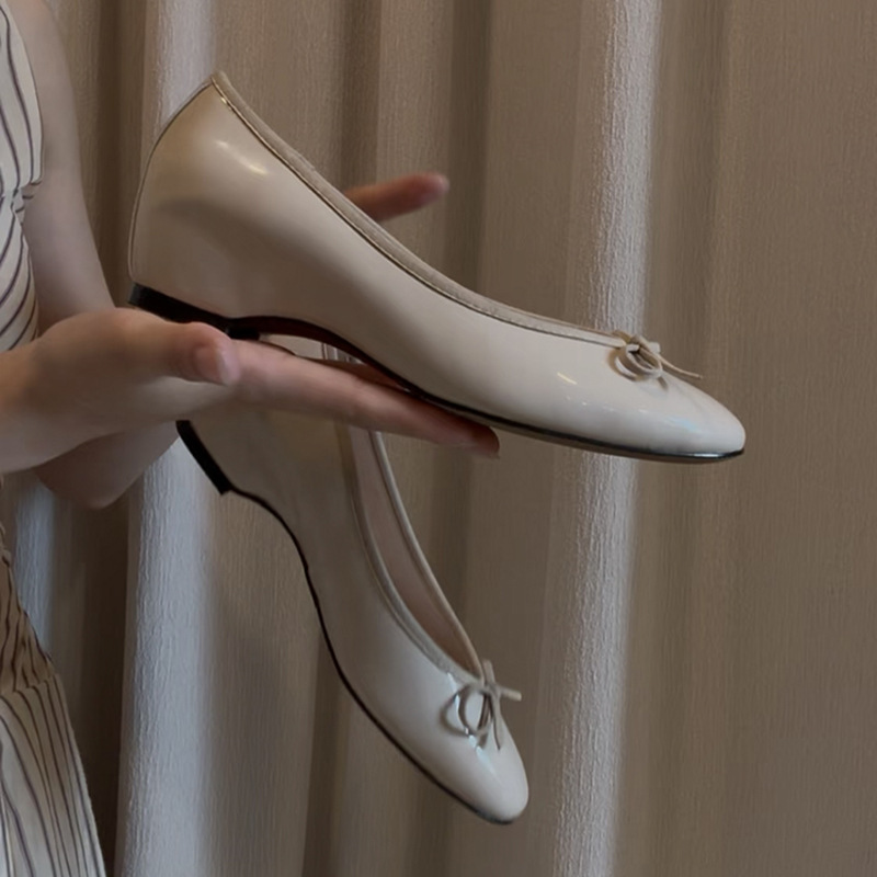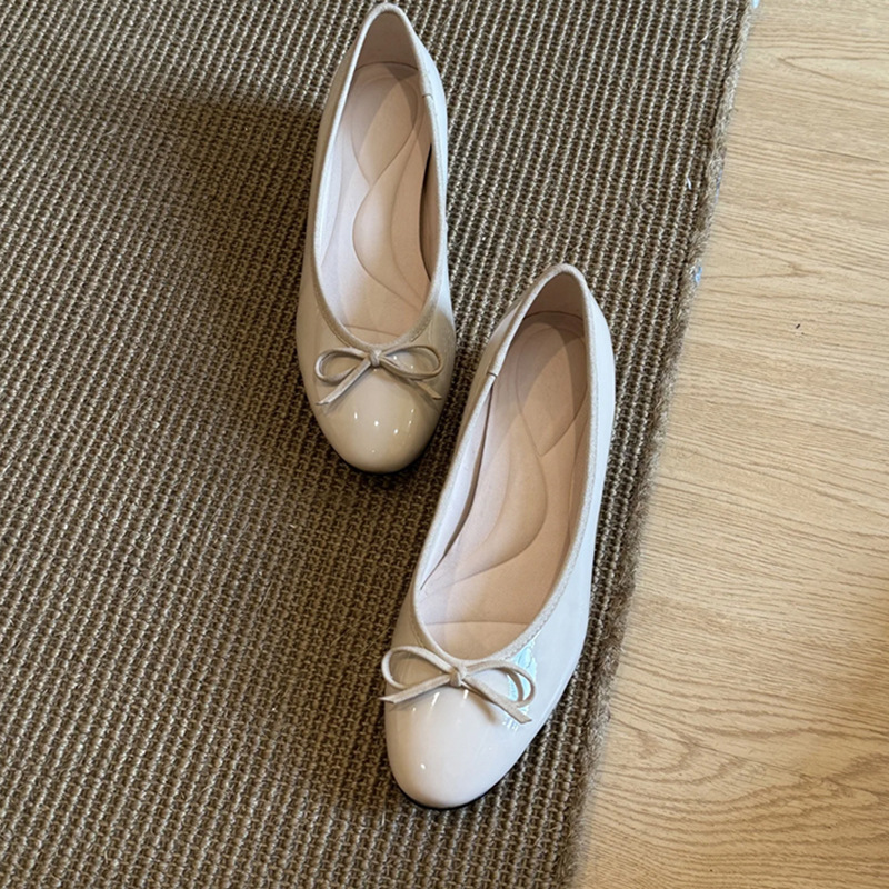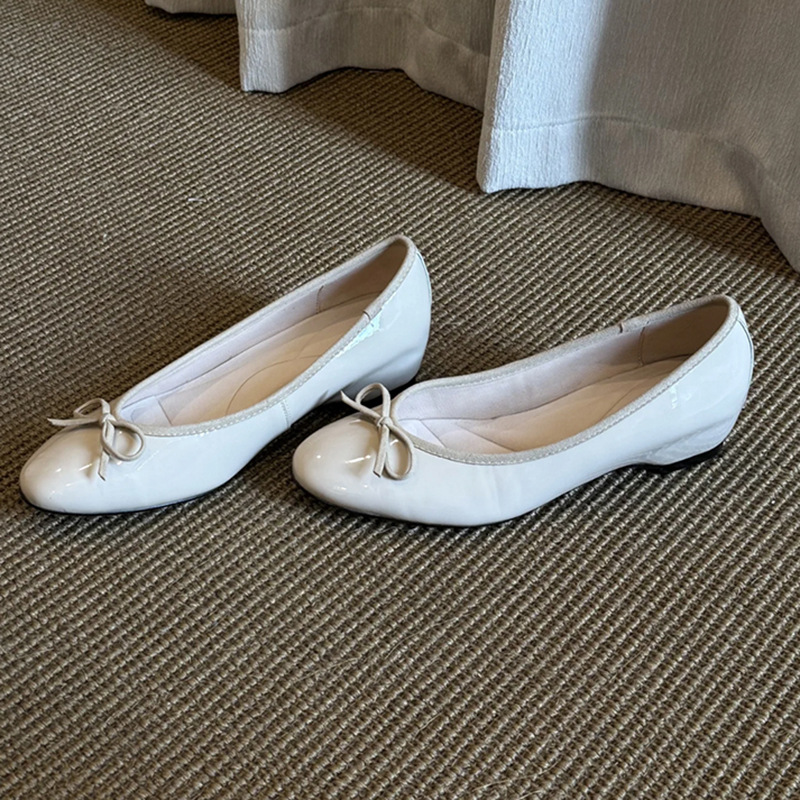 양가죽 버전 ~ 둥근코 레트로 보우 발레슈즈, 슬립온 통근 스타일 여성용 키높이 펌프스