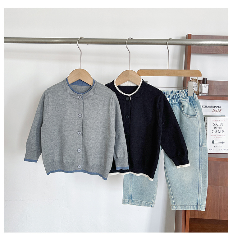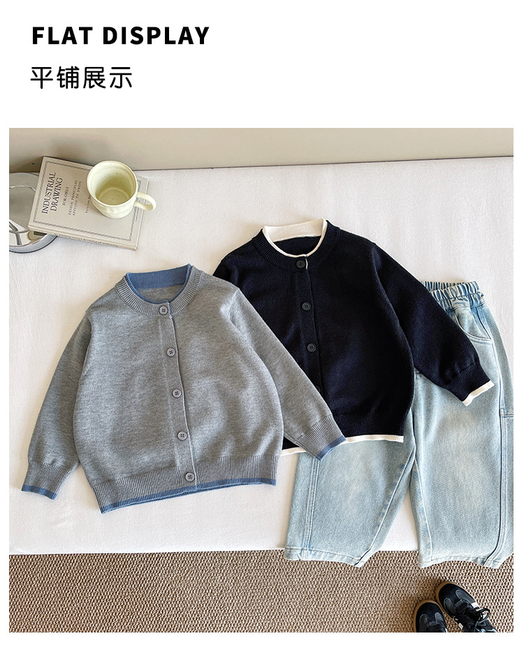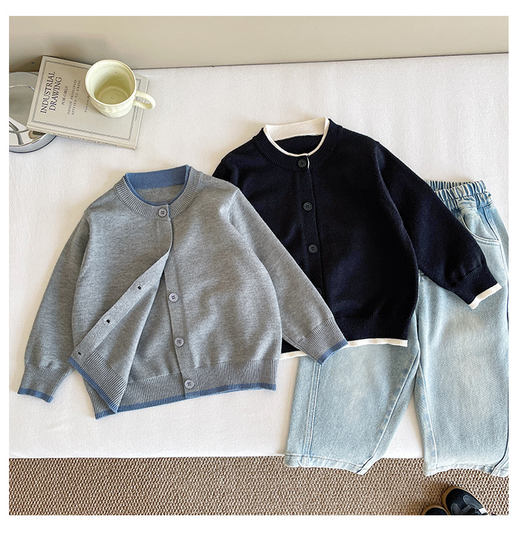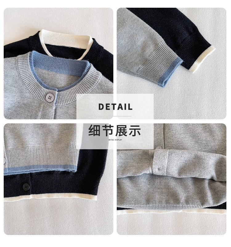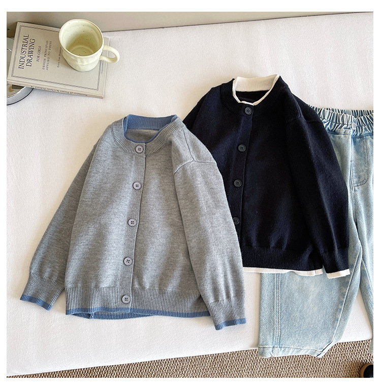 바람의 계곡 2025 가을 신작 아동복 아동 한국어 버전 다용도 카디건 스웨터 소년 스플 라이스 대비 색상 스웨터스토어 가기