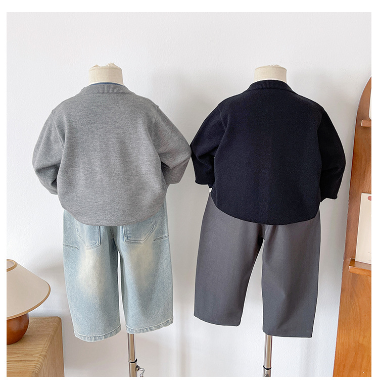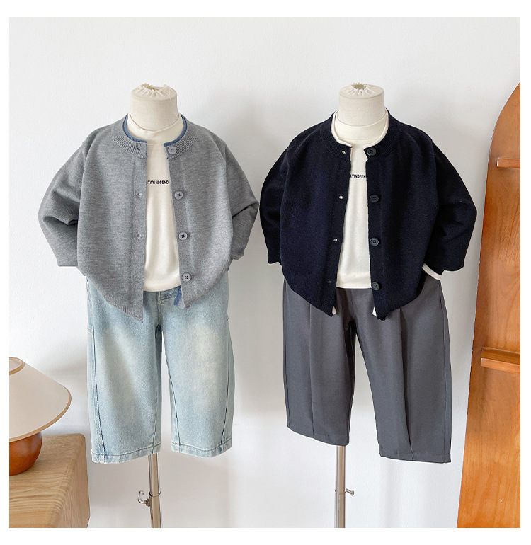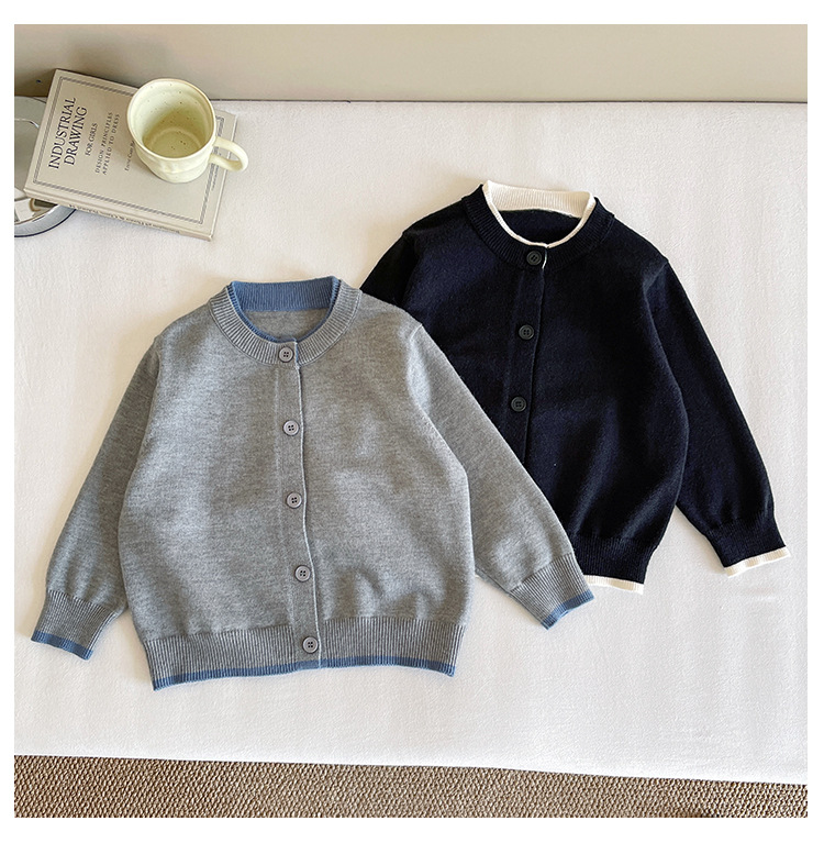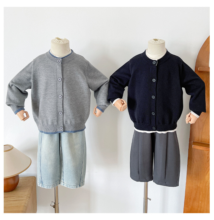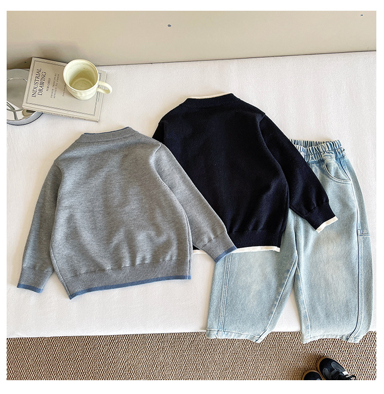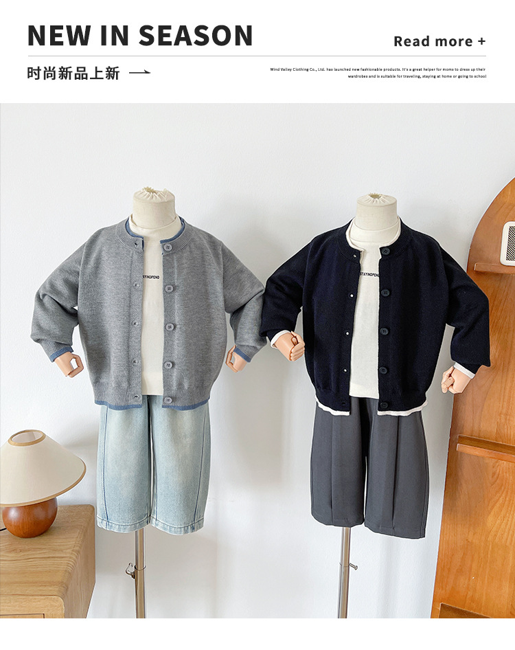 바람의 계곡 2025 가을 신작 아동복 아동 한국어 버전 다용도 카디건 스웨터 소년 스플 라이스 대비 색상 스웨터스토어 가기