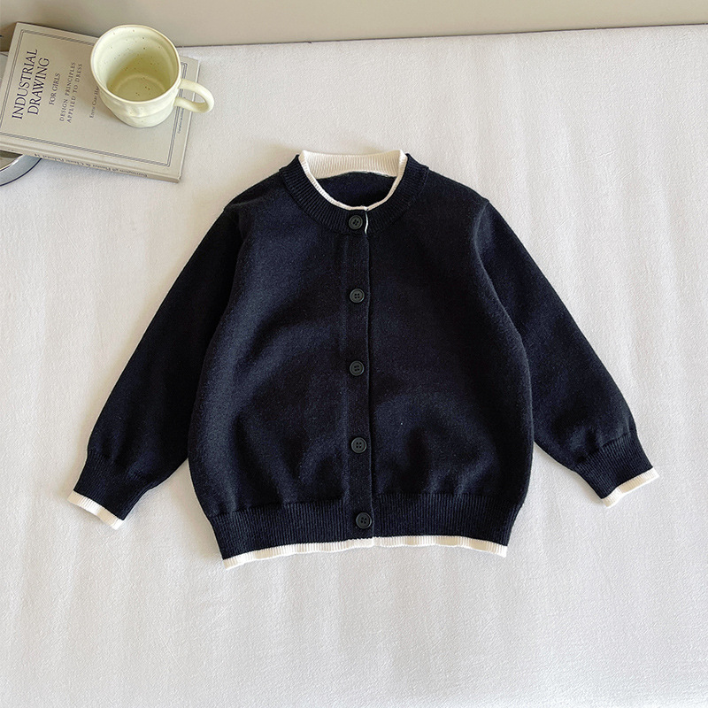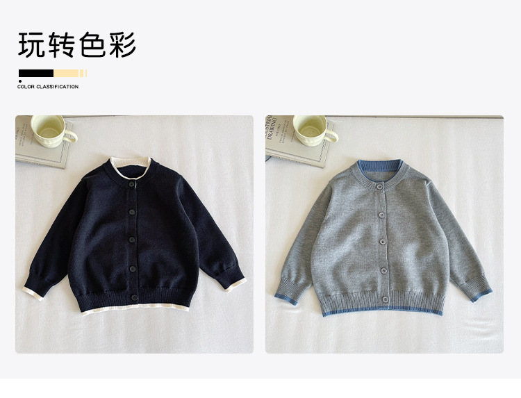 바람의 계곡 2025 가을 신작 아동복 아동 한국어 버전 다용도 카디건 스웨터 소년 스플 라이스 대비 색상 스웨터