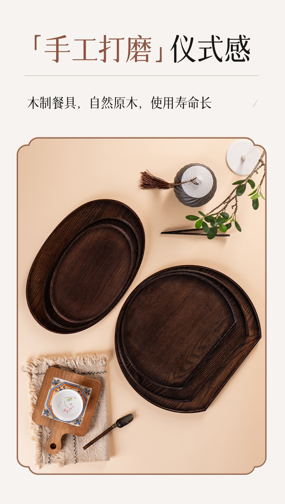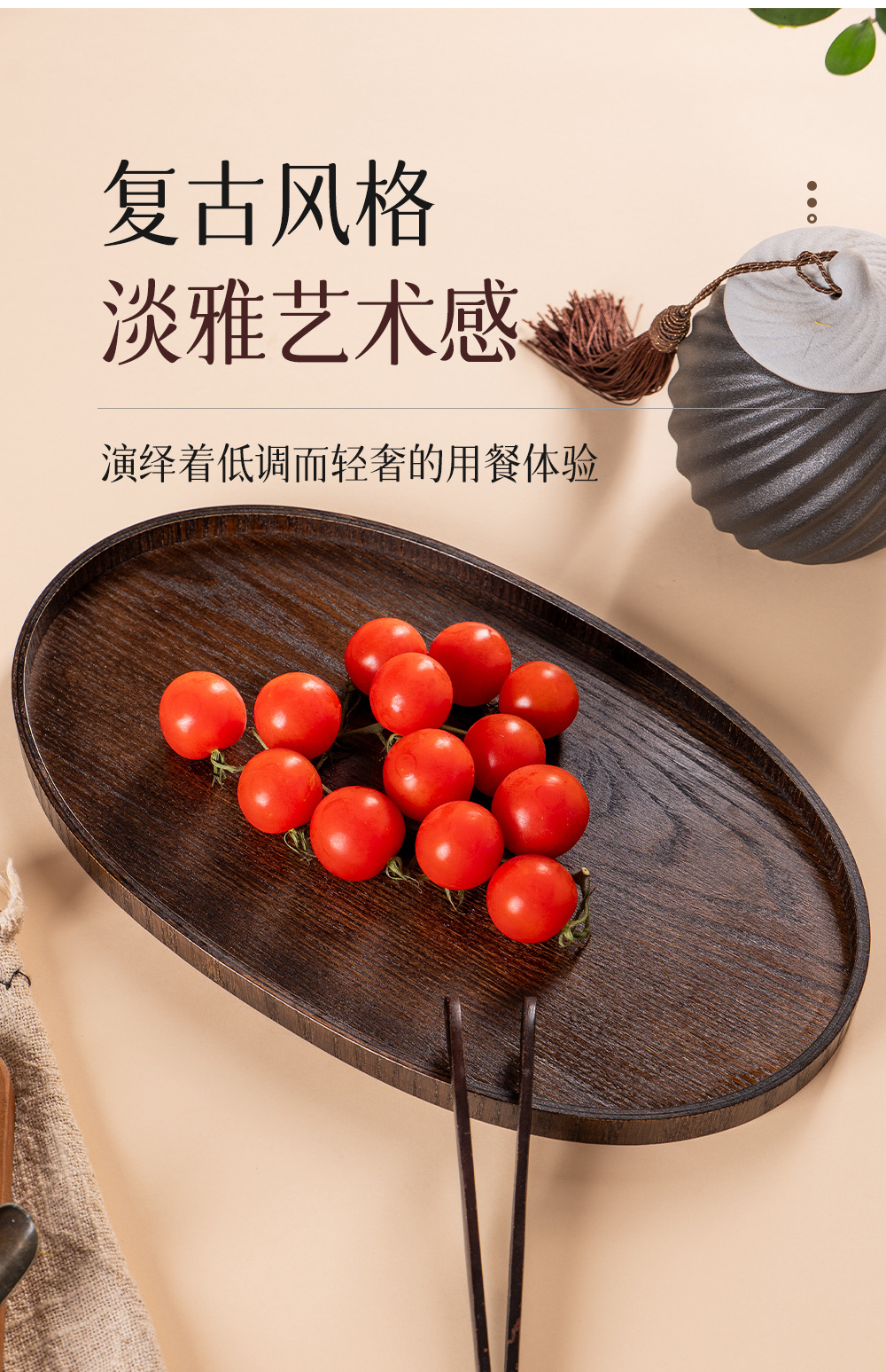 공장 직접 판매 아카시아 나무 복고풍 올드 래커 대형 접시 일본 차 트레이 호텔 식기 과일 접시 보관함스토어 가기