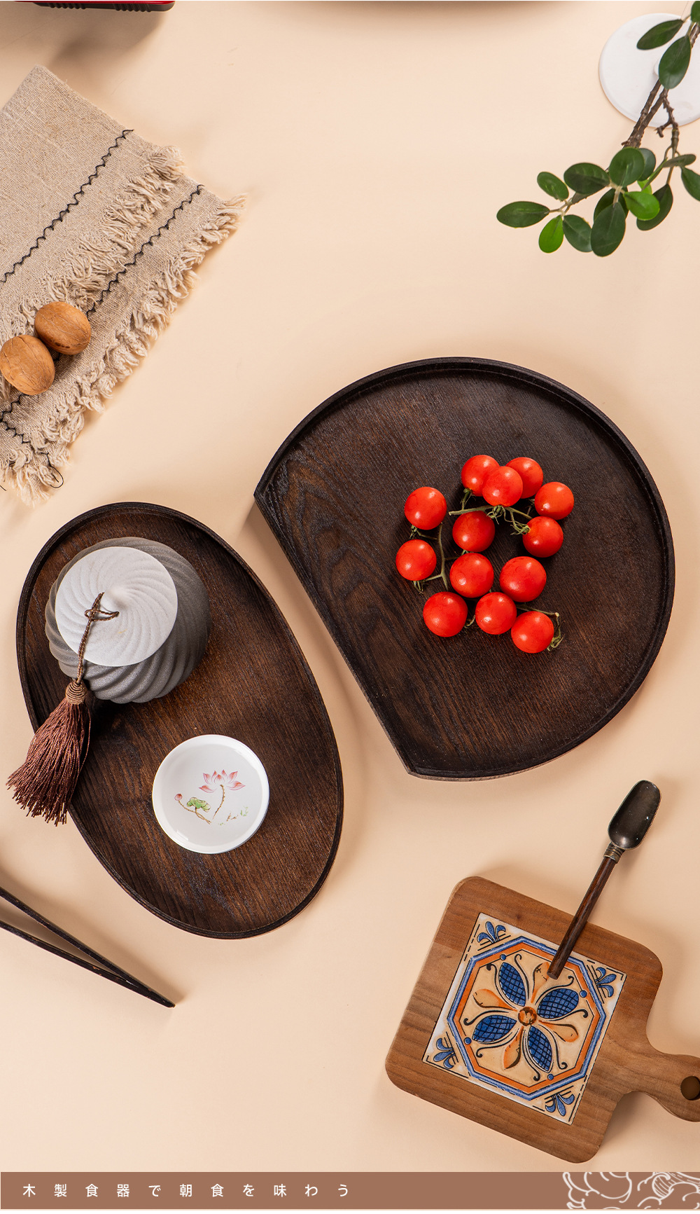 공장 직접 판매 아카시아 나무 복고풍 올드 래커 대형 접시 일본 차 트레이 호텔 식기 과일 접시 보관함