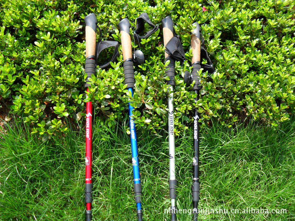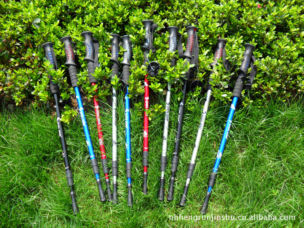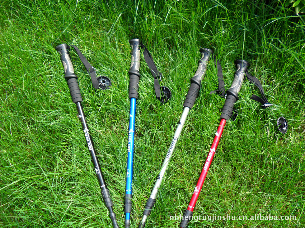 야외 알루미늄 합금 텔레스코픽 트레킹 스틱 여행 하이킹 지팡이 노인 미끄럼 방지 충격 흡수 지팡이 제조 업체 도매스토어 가기