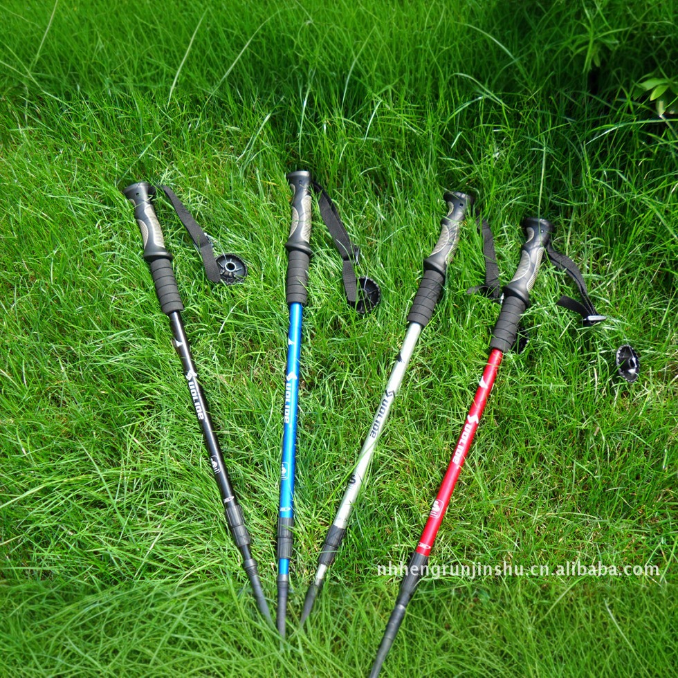 야외 알루미늄 합금 텔레스코픽 트레킹 스틱 여행 하이킹 지팡이 노인 미끄럼 방지 충격 흡수 지팡이 제조 업체 도매
