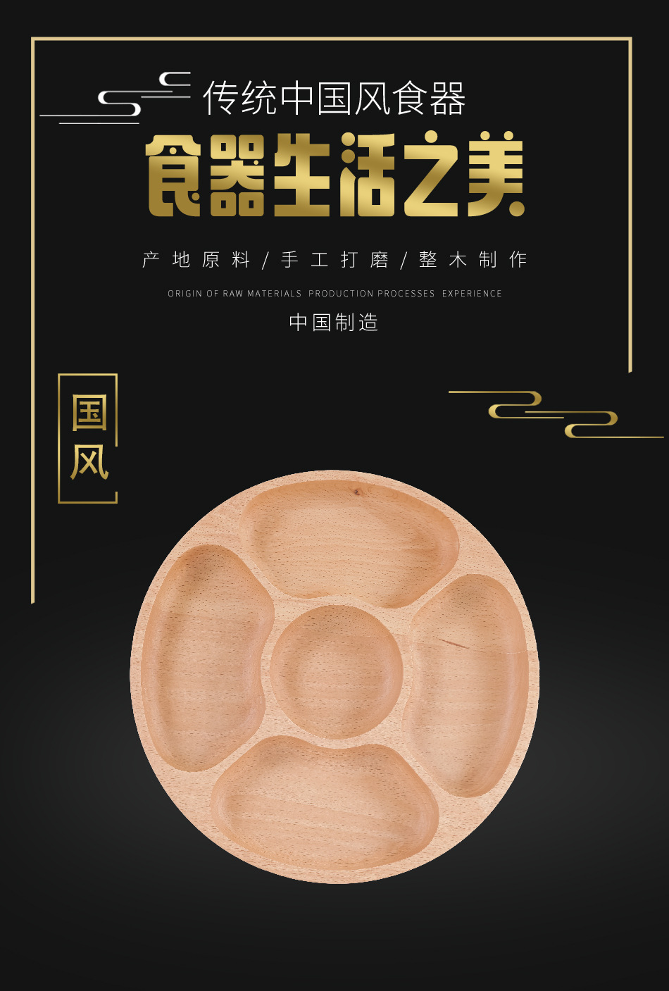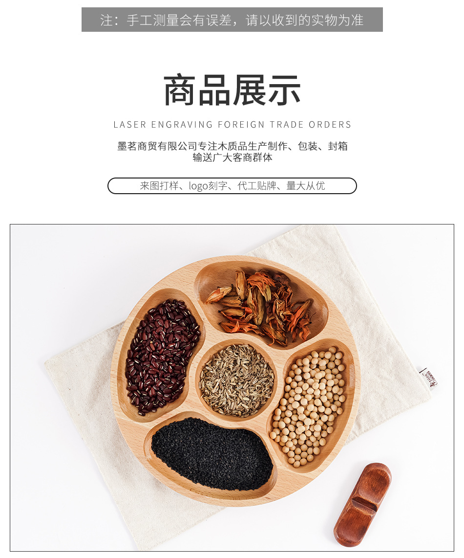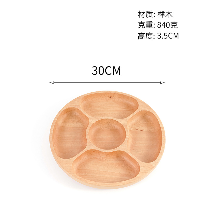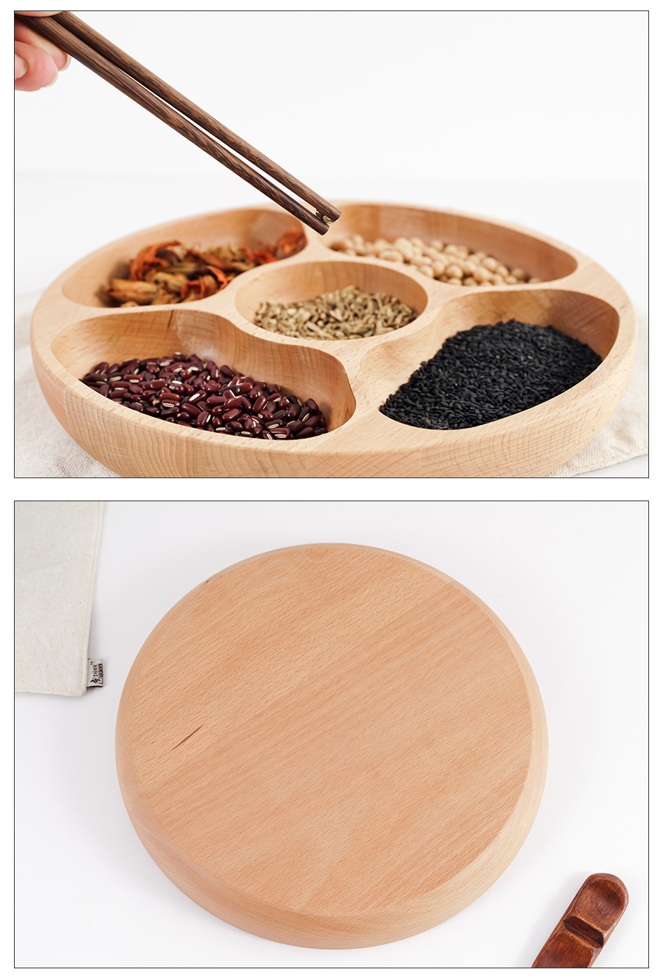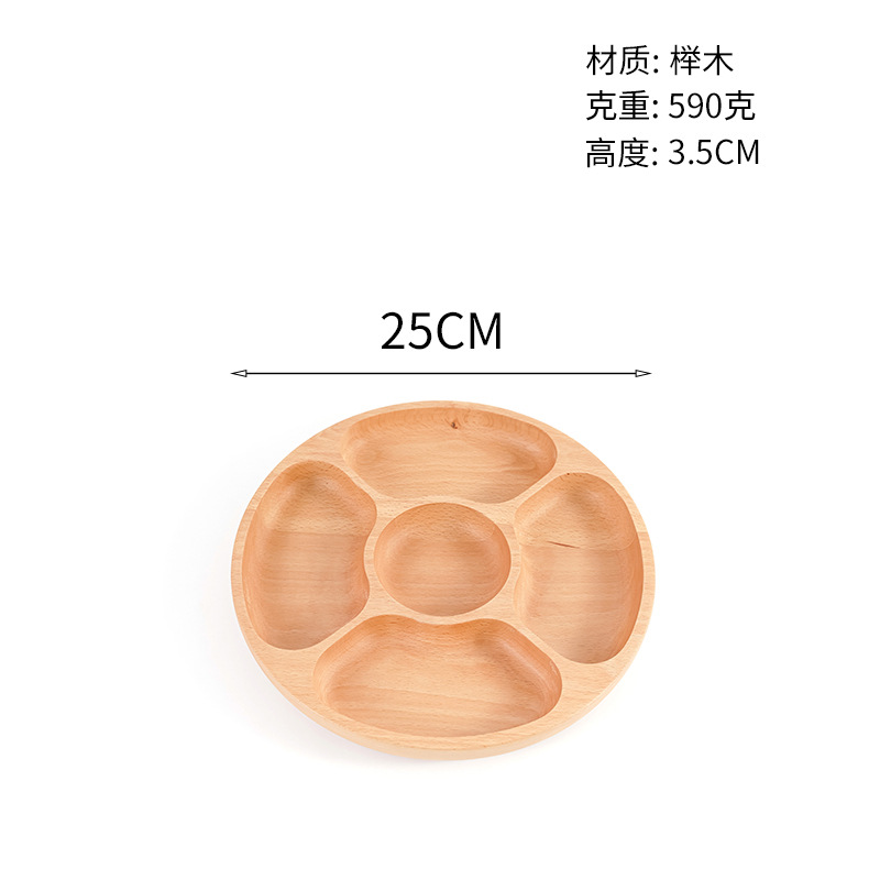 단단한 나무 접시, 너도밤나무 5칸 접시, 과일 접시, 둥근 나무 트레이, 창의적인 말린 과일 접시, 둥근 접시, 스낵 접시