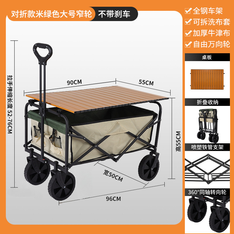 • 대형 와이드 휠 드래그 버킷 모델(베이지 그린) + 높고 길어진 접이식 테이블