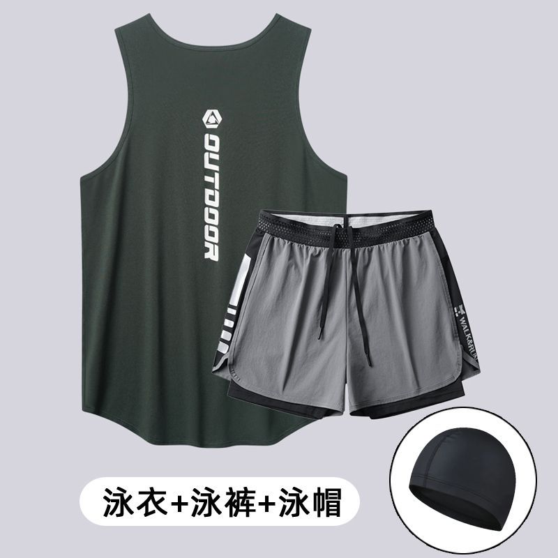 • 녹색 229 짙은 녹색 조끼 + 회색 수영 트렁크 + 수영 모자