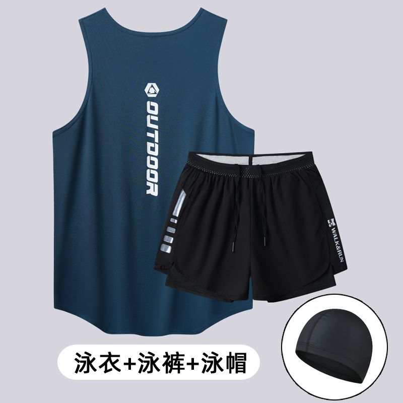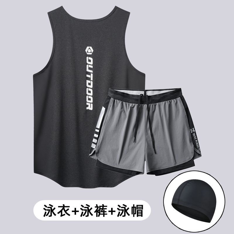 남성용 수영복 세트, 루즈하고 당황스러운 듯한 더블 레이어 수영 트렁크, 속건성 조끼, 2피스 온천 성인 수영복스토어 가기