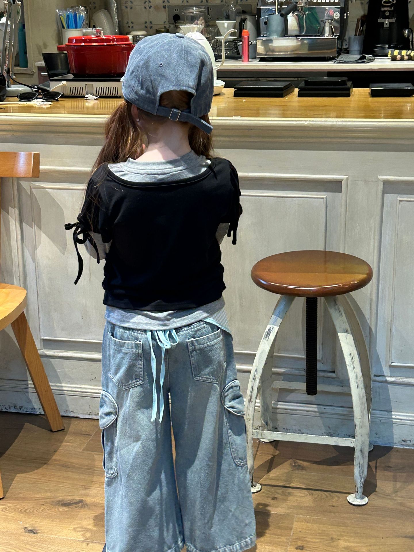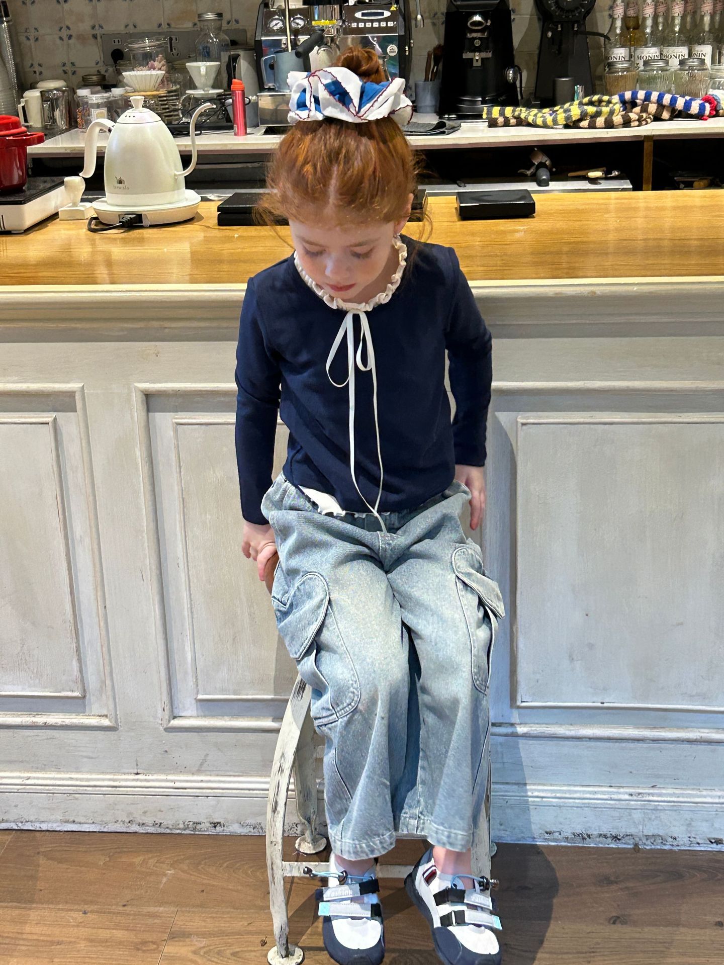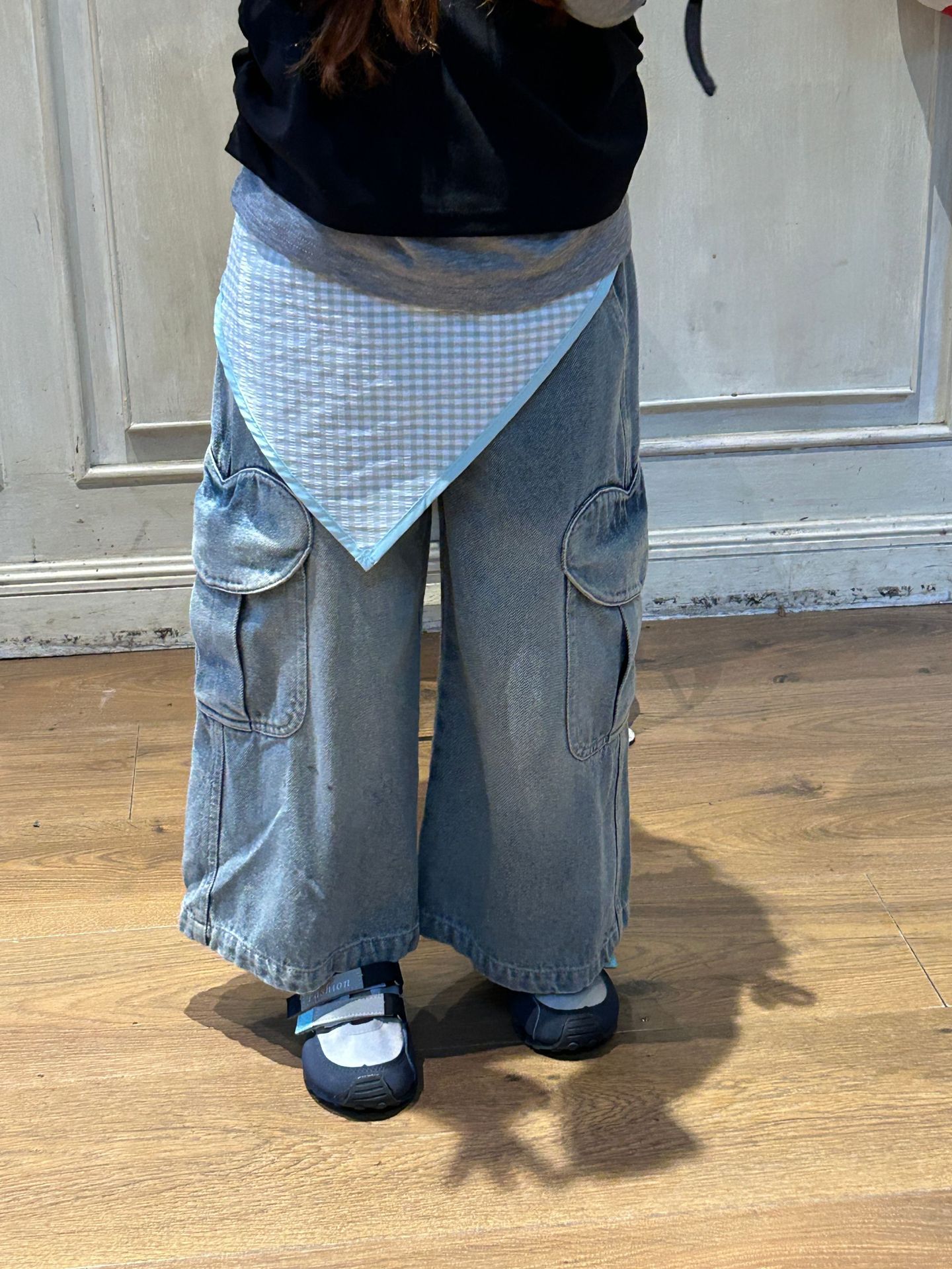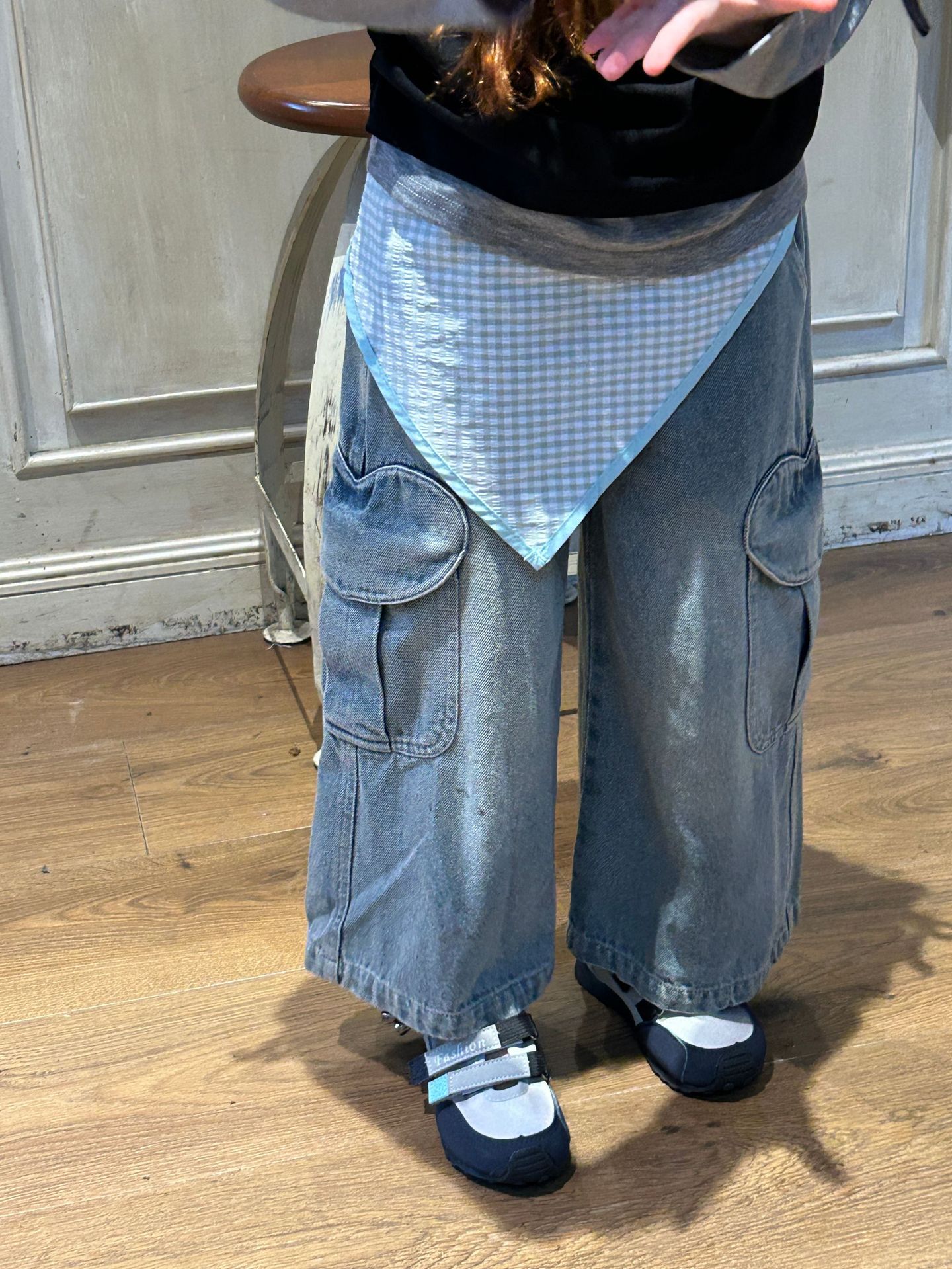 2025 새로운 가을 소녀 청바지 러브 포켓 어린이 스트레이트 청바지 서양식 바지스토어 가기