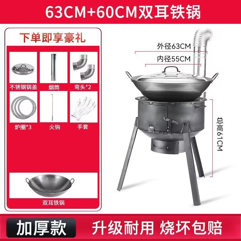 • 63CM 스토브 + 스토브 링 3개 + 냄비 60개 + 뚜껑이 있는 스푼, 무료 굴뚝 선물 가방