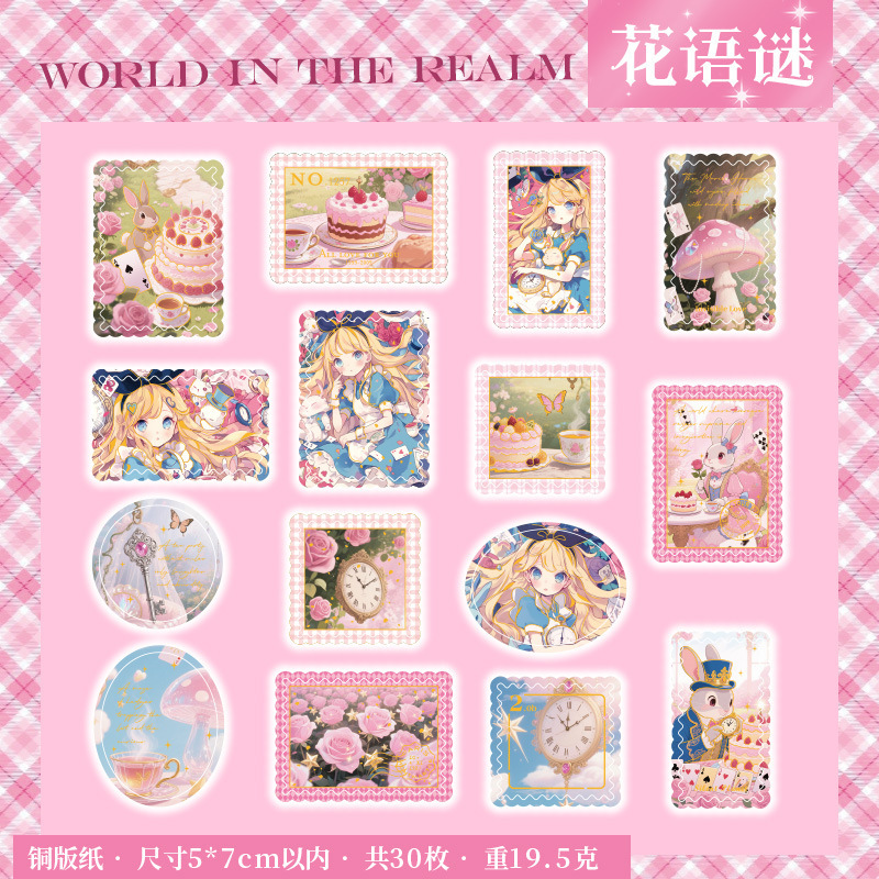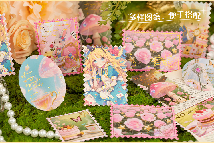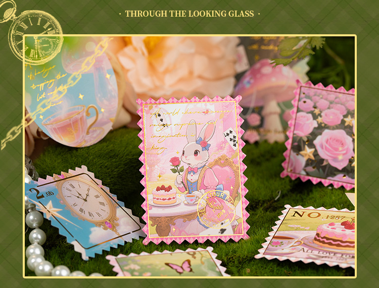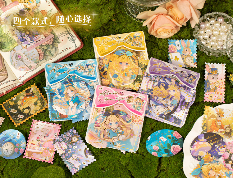 Yuxian 핫 스탬프 스티커 팩 거울 세계 크리 에이 티브 핸드북 Gu Meiba DIY 장식 선물 상자 씰링 스티커