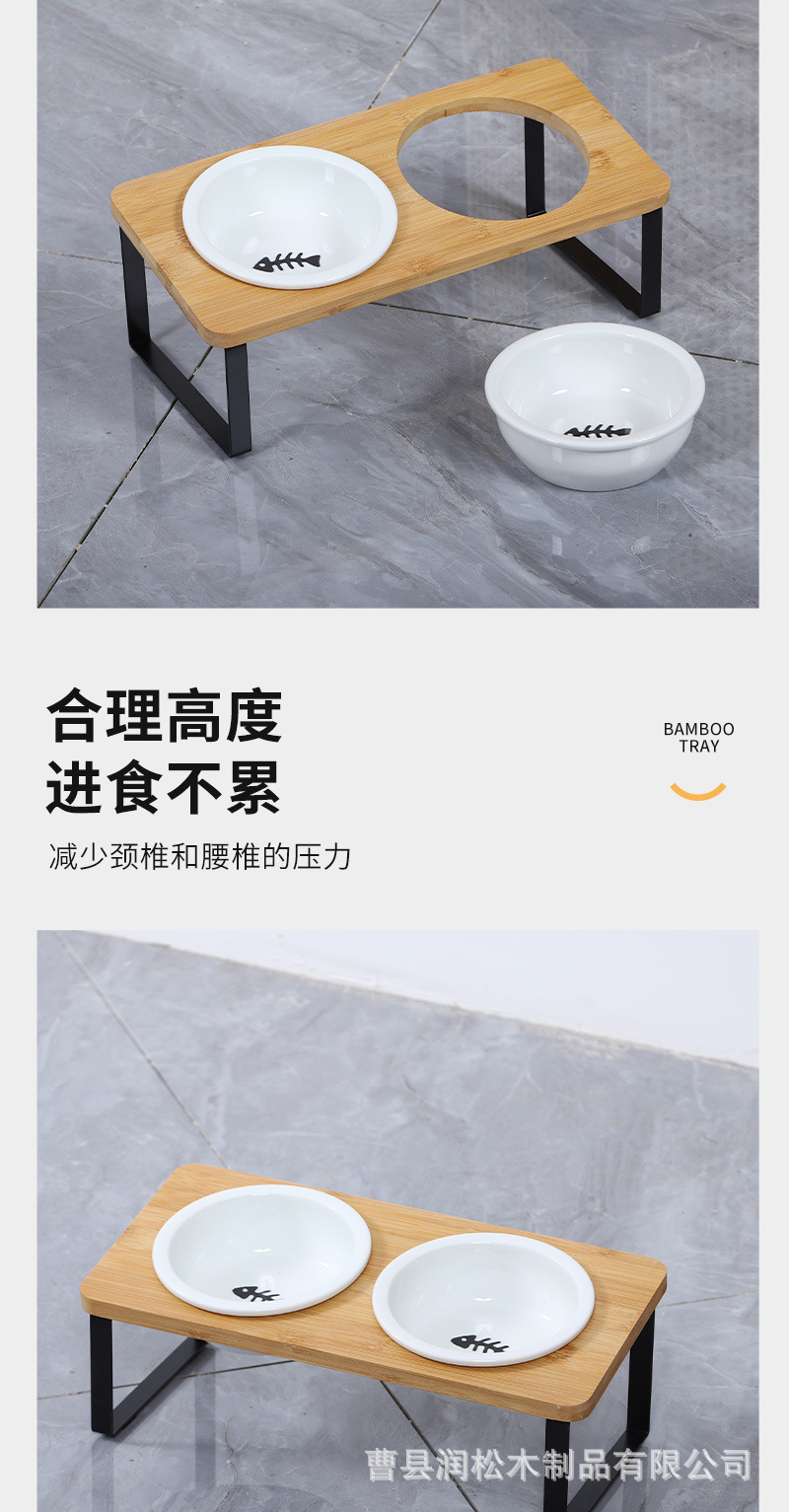 대나무 고양이와 개 그릇 랙 더블 그릇 피더 랙 나무 고양이 그릇 랙 애완 동물 식기 작은 개 애완 동물 식탁스토어 가기
