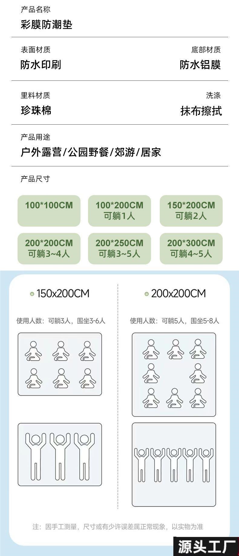 두꺼운 컬러 필름 필드 캠핑 매트 야외 피크닉 매트 피크닉 천 매트 바닥 매트 기숙사 방습 매트리스 스트레이트스토어 가기