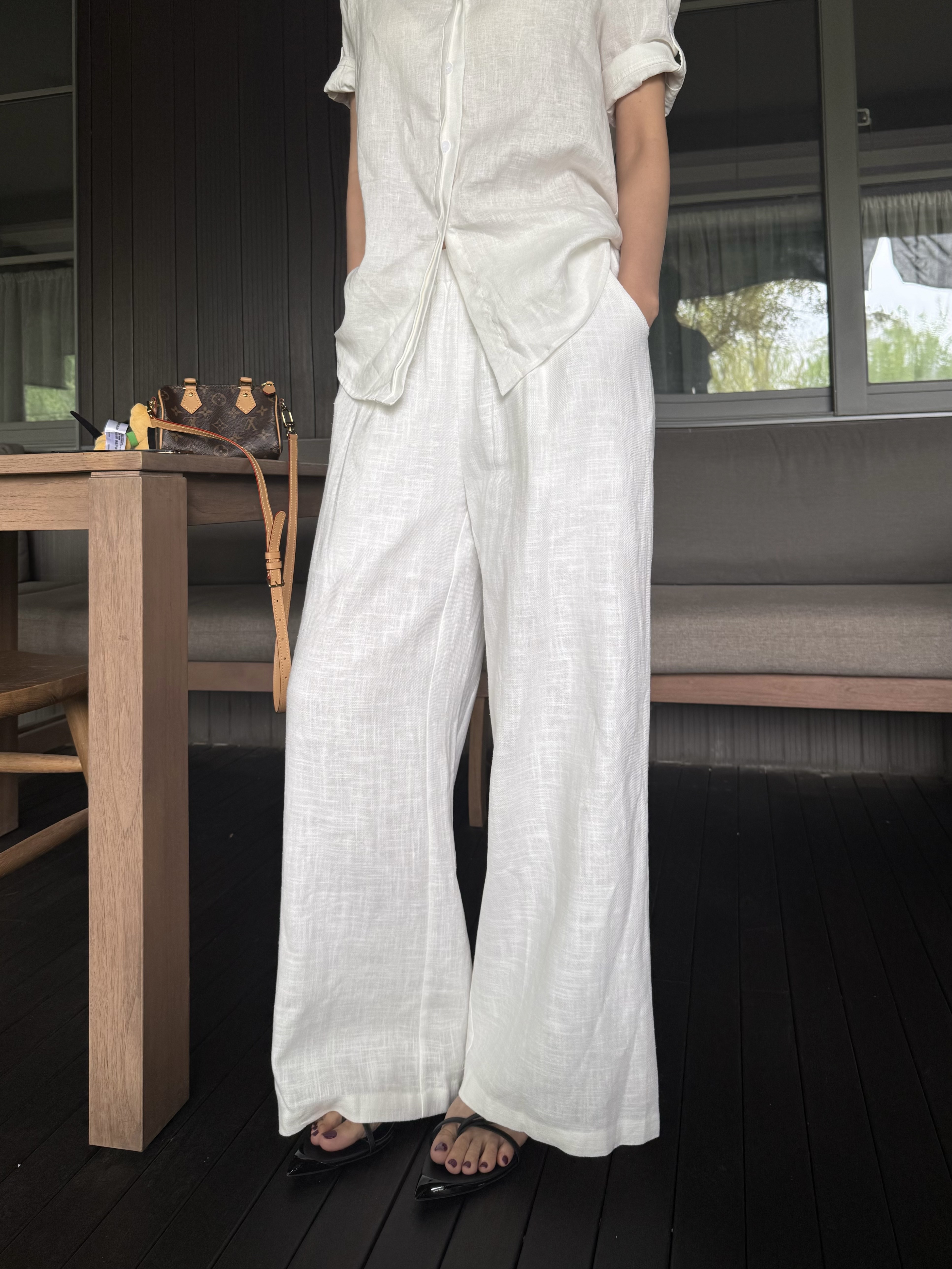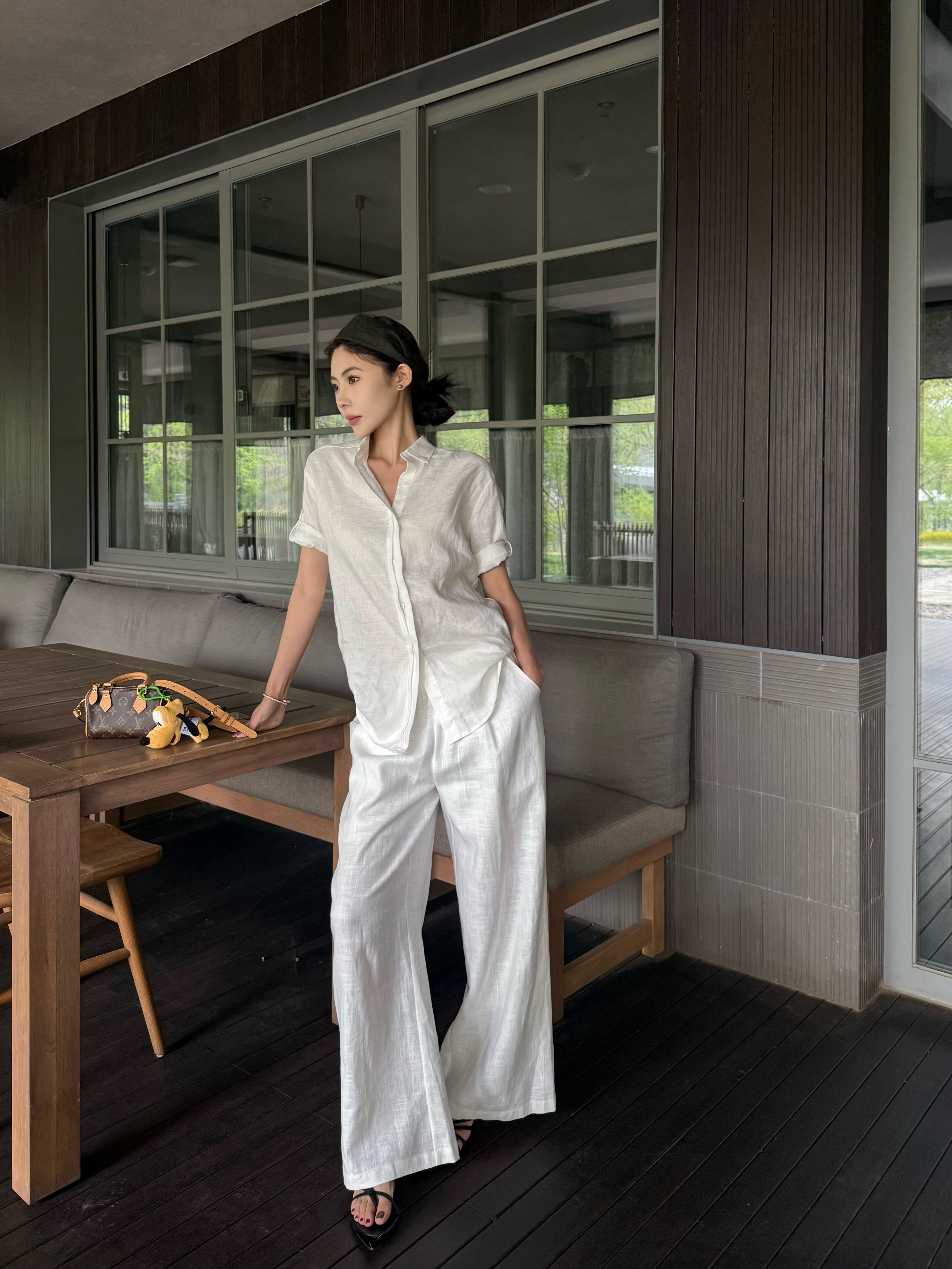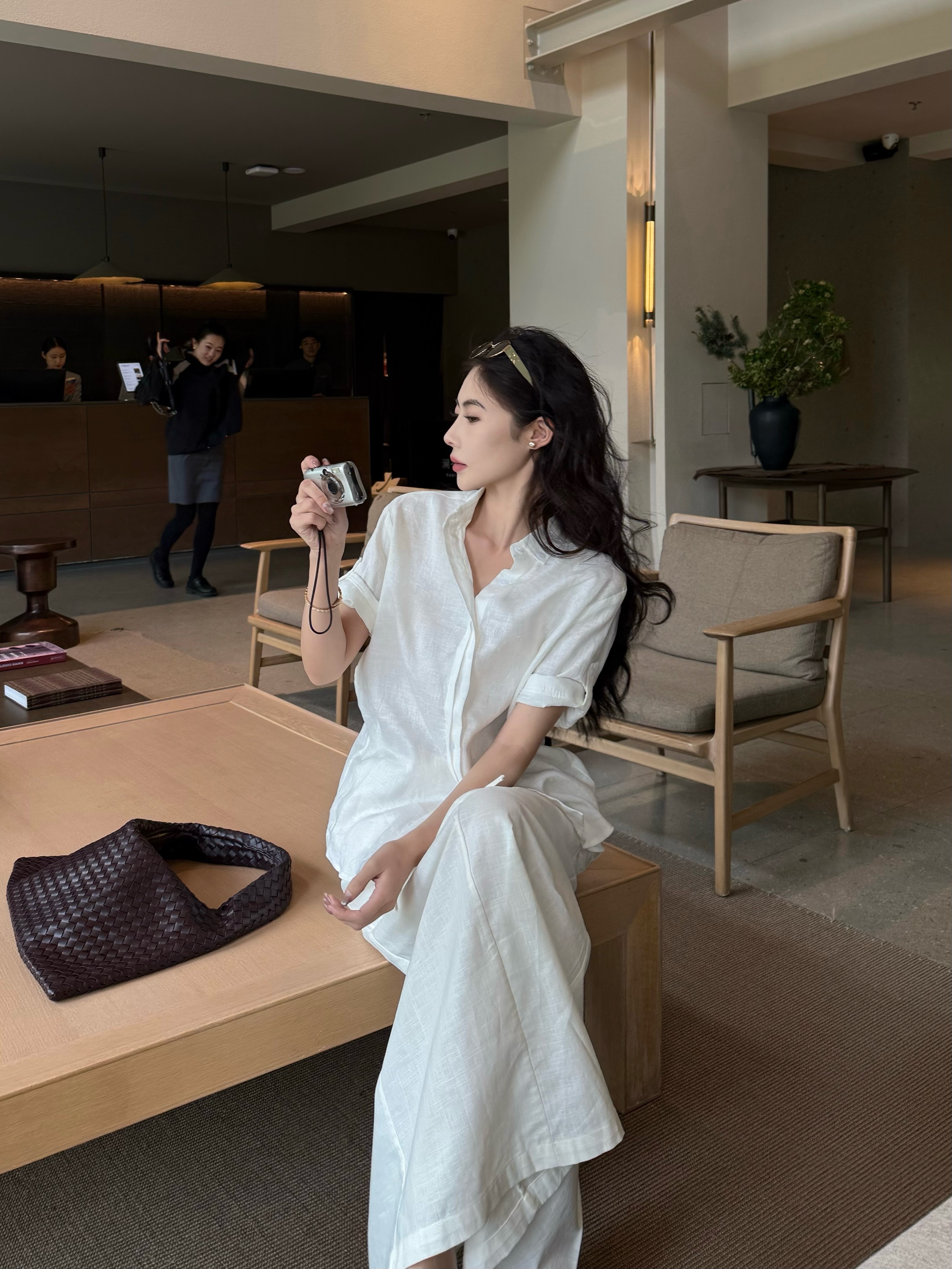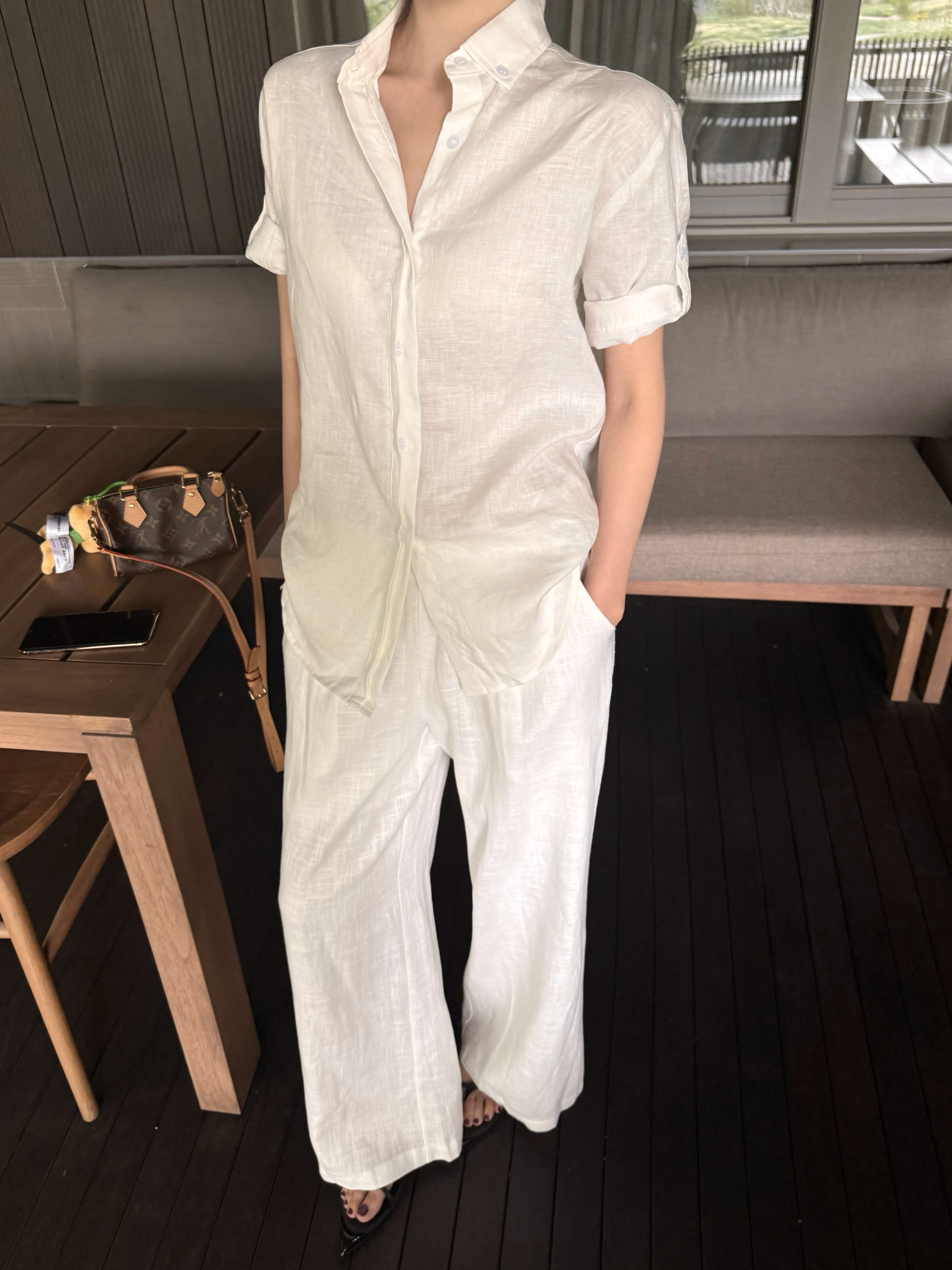 시메이 2025 여름 패션 세트 화이트 폴로 칼라 반팔 셔츠 여성용 드레이프 하이웨이스트 스커트 투피스 세트
