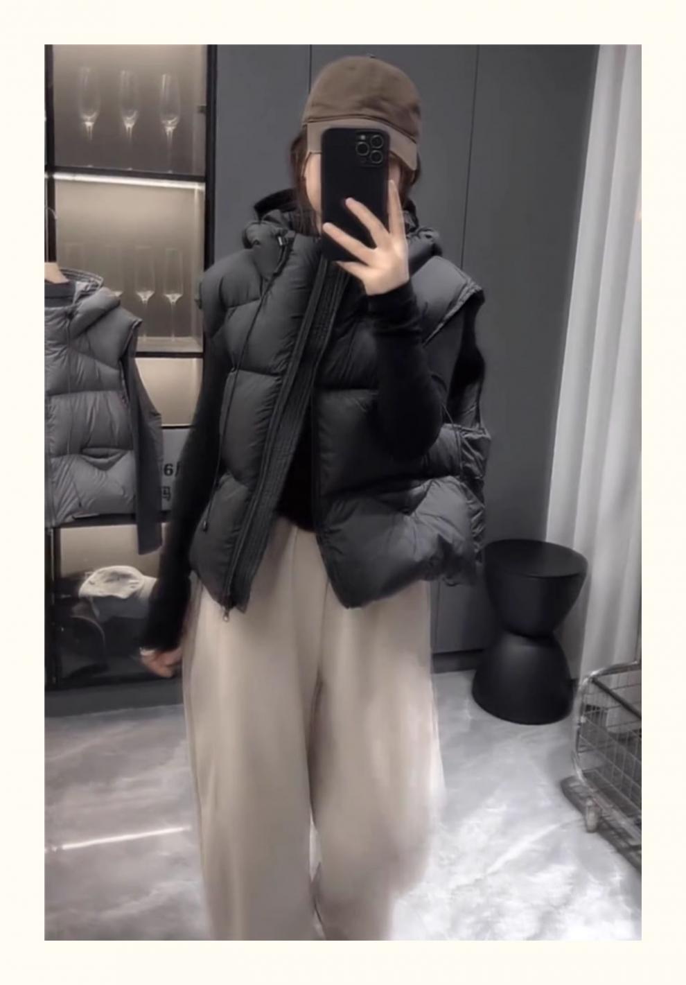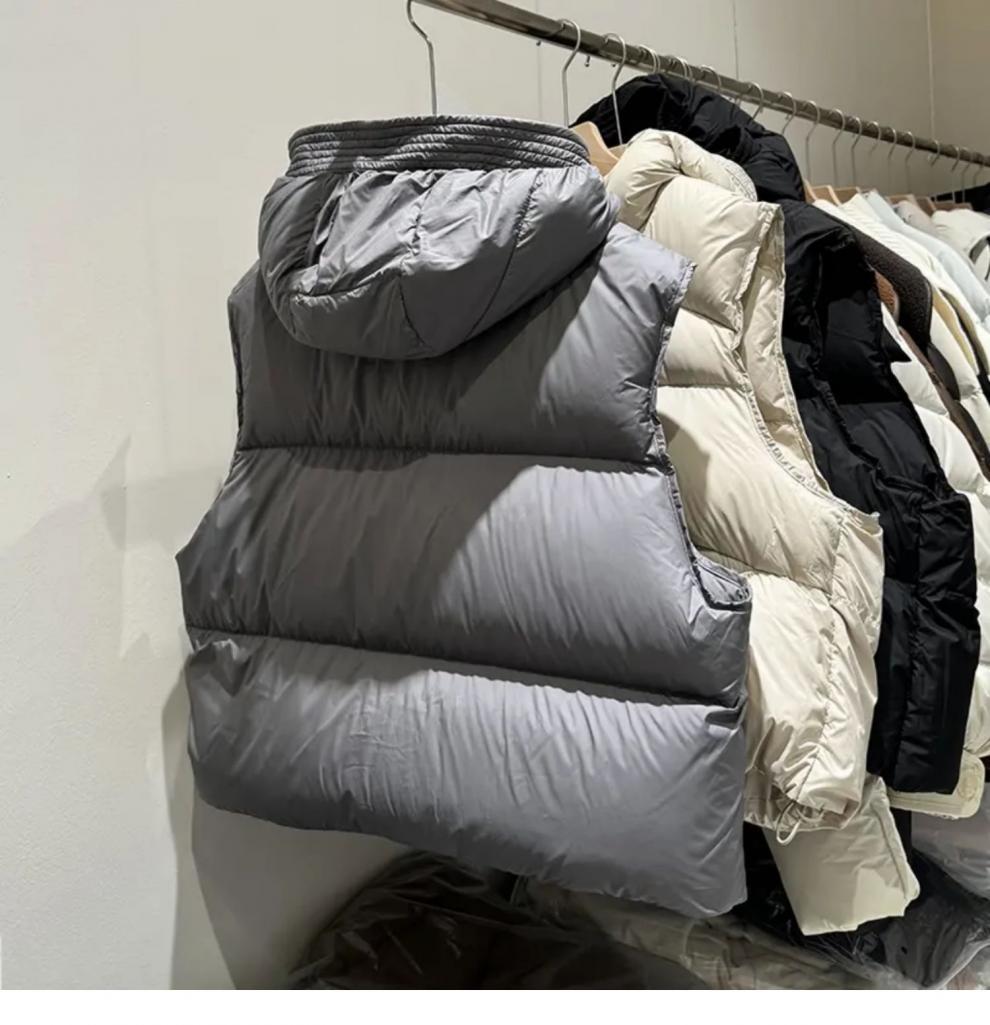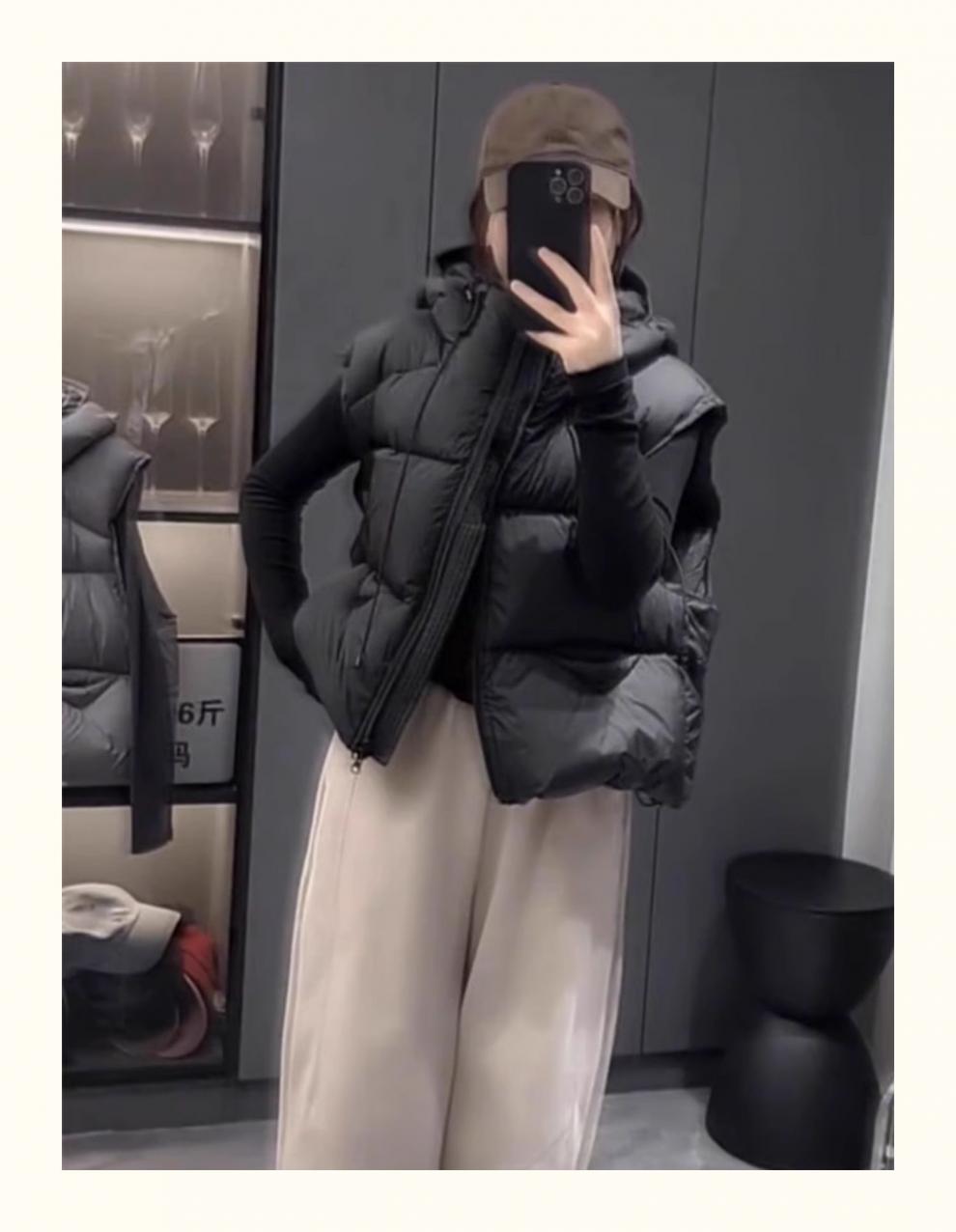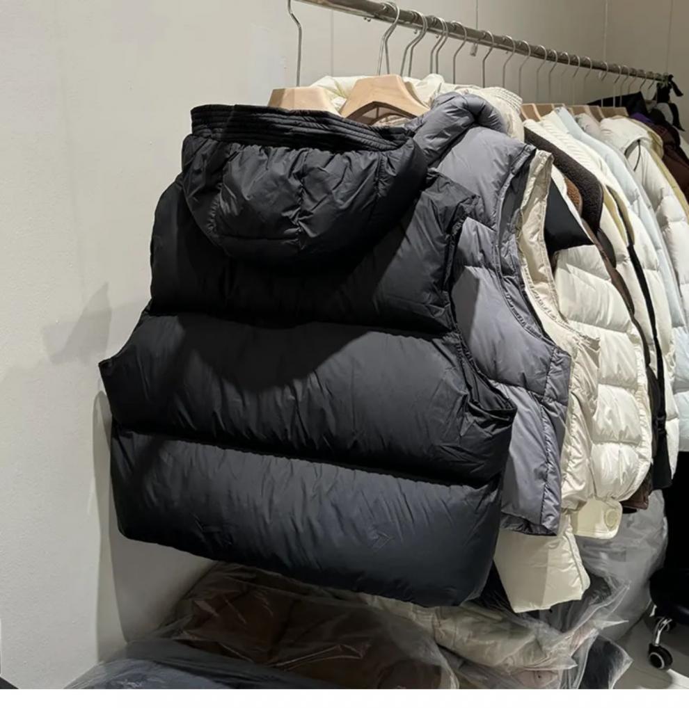 다운 코튼 조끼 여성 짧은 후드 새로운 스타일 2025 한국어 느슨한 하이 엔드 작은 조끼 양복 조끼 코튼 자켓스토어 가기