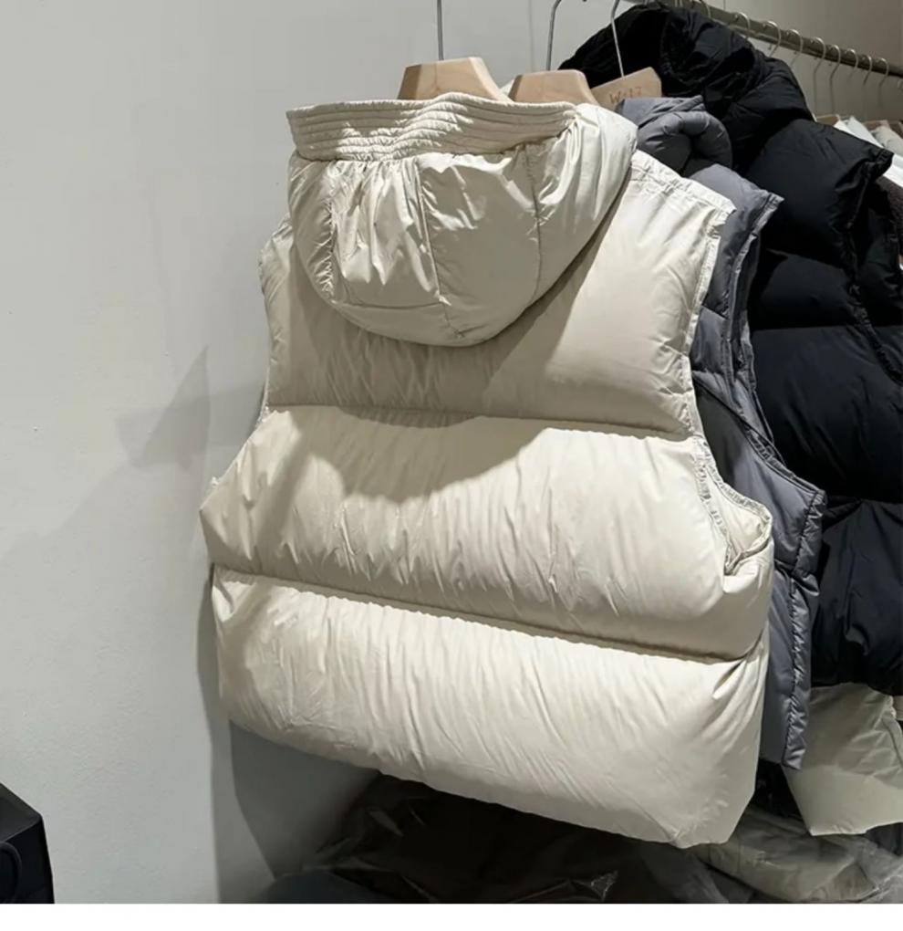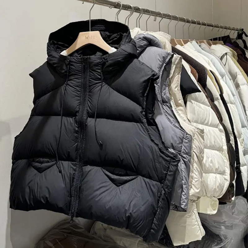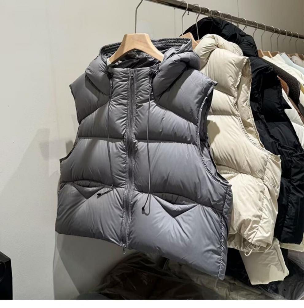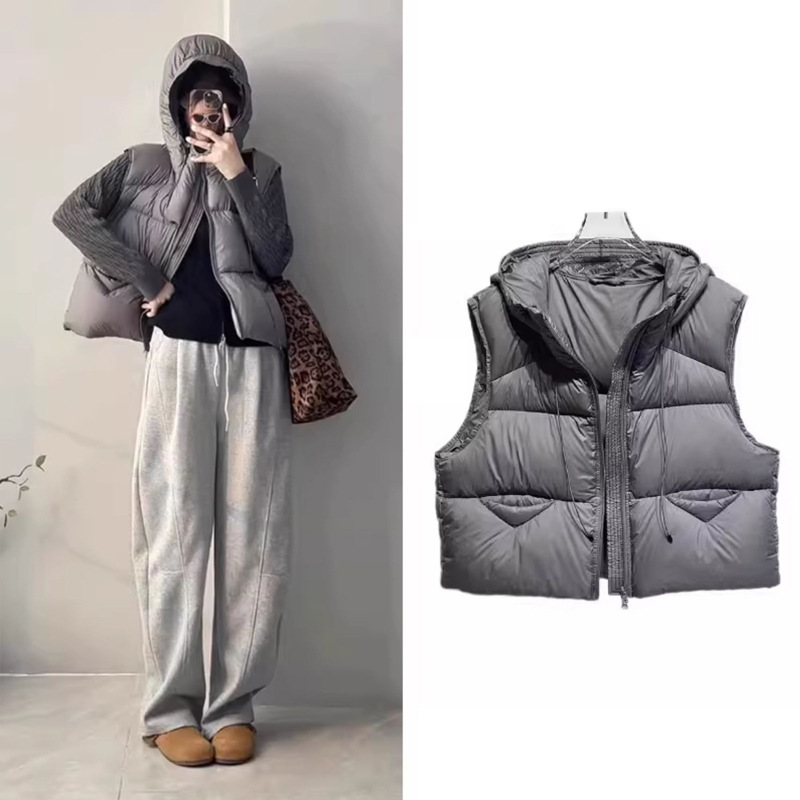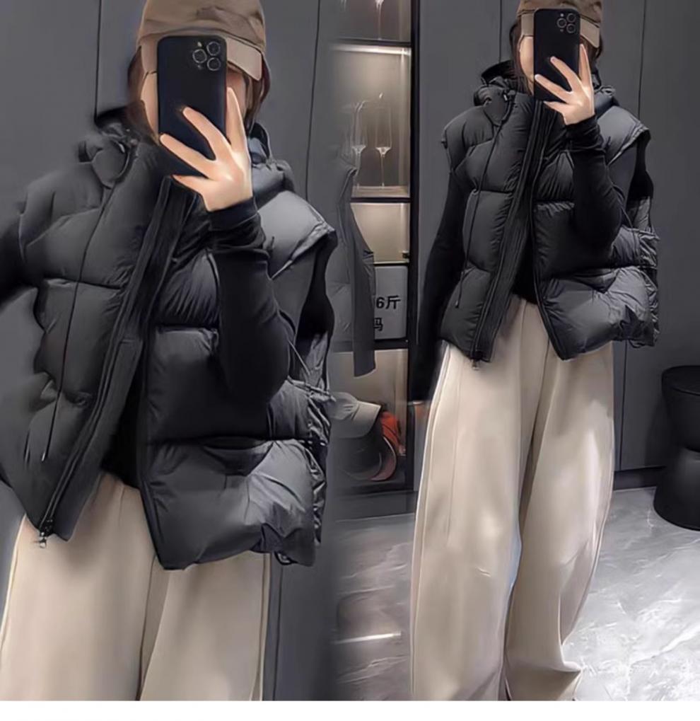 다운 코튼 조끼 여성 짧은 후드 새로운 스타일 2025 한국어 느슨한 하이 엔드 작은 조끼 양복 조끼 코튼 자켓