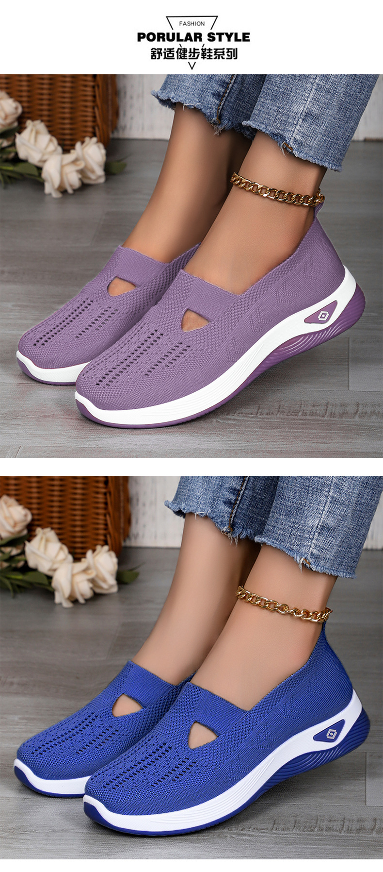 여성화 크로스보더 대형 캐주얼 신발 플라이 니트 통기성 신발 여성용 가볍고 편안한 메쉬 신발 부드러운 밑창 얕은 구두