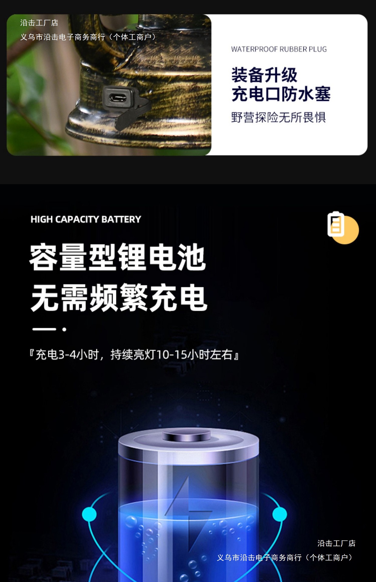 • 원통형 모델 + 화염등 + 태양광 Type-C 고속 충전