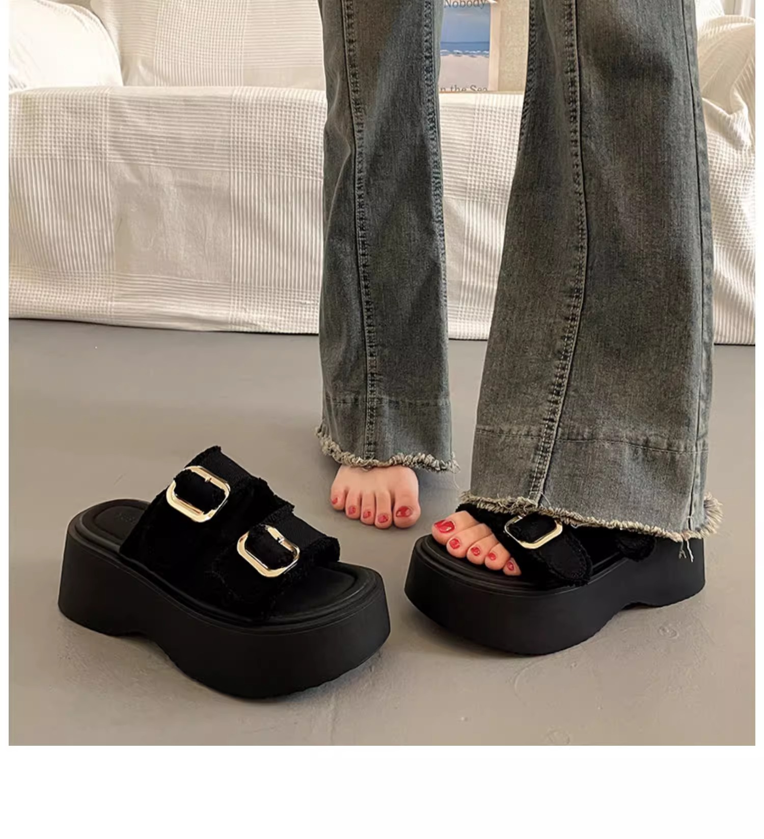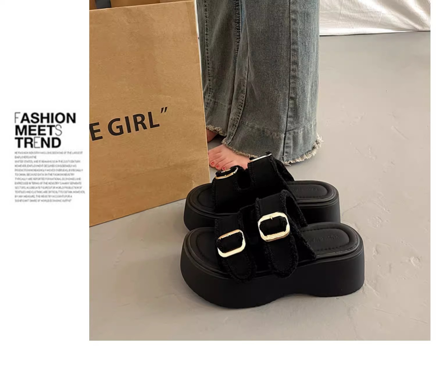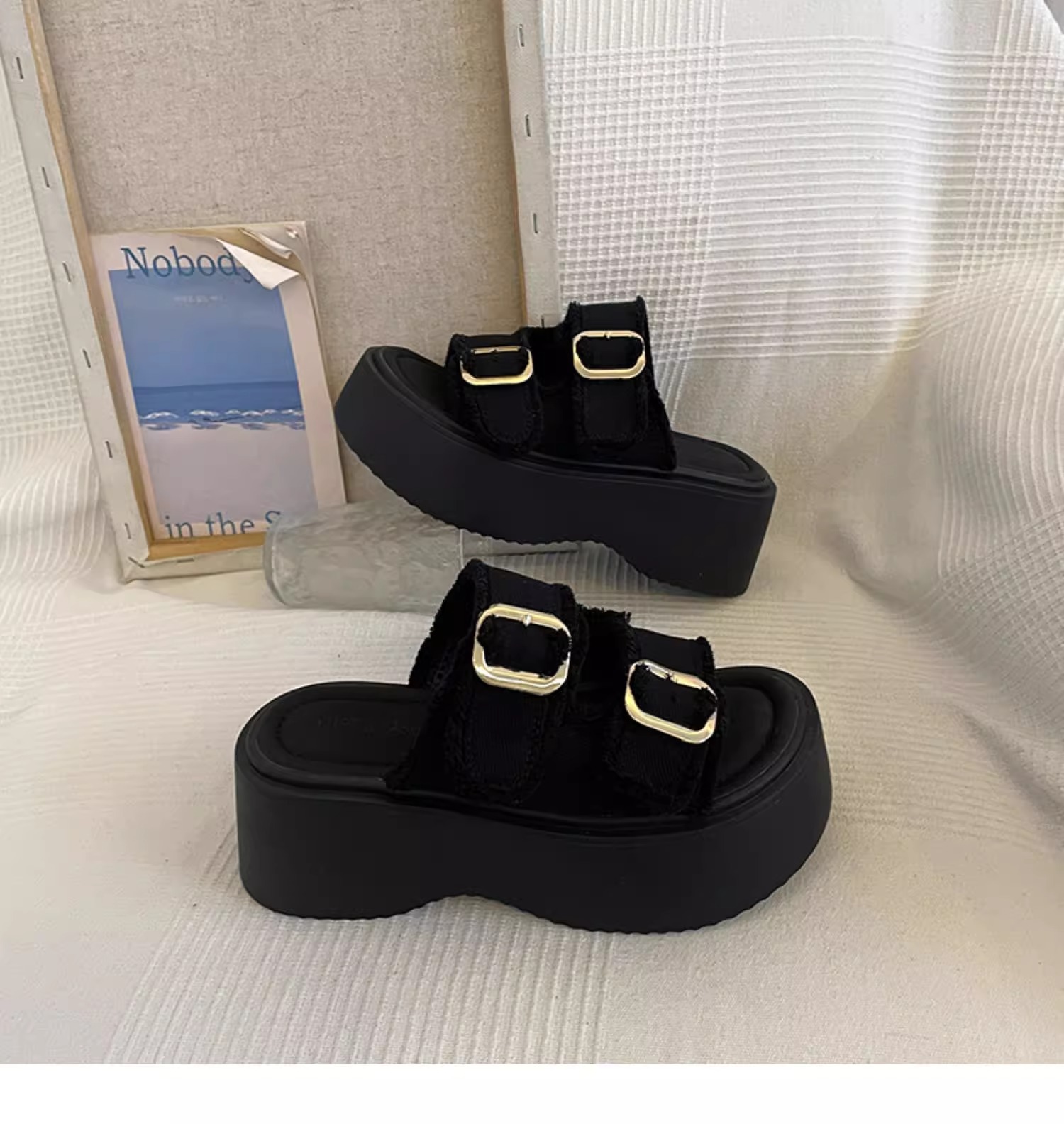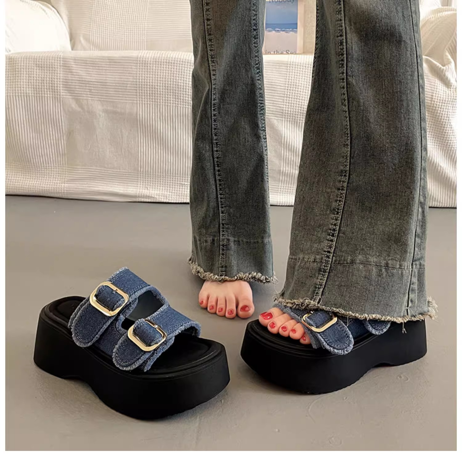 여성용 두꺼운 밑창 플랫폼 샌들 2025 새로운 다용도 데님 슬리퍼 스포츠 로마 샌들 유럽 패션 트렌드 여성용스토어 가기