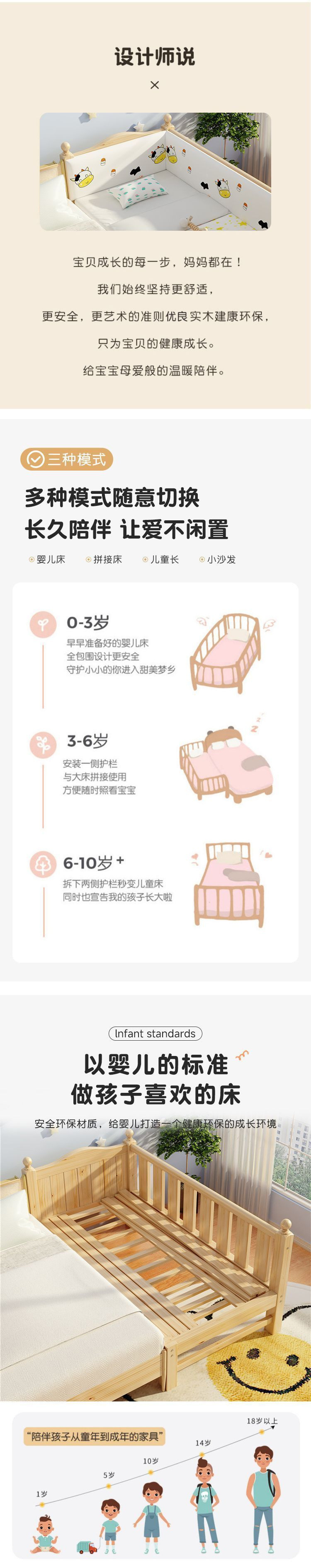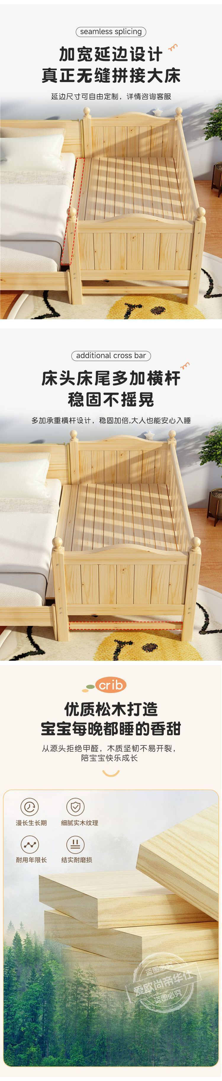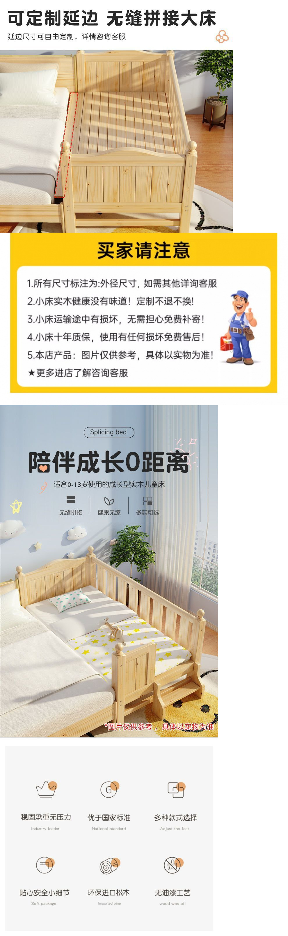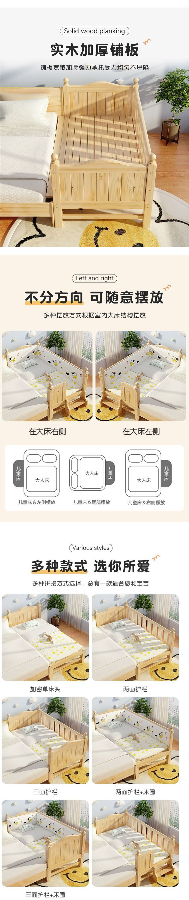 단단한 나무 아기 접합 침대와 더 넓은 어린이 가드 레일 아기 싱글 소년 유아용 침대 소녀 침대 옆 큰 침대스토어 가기