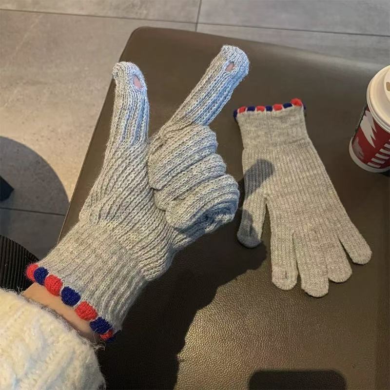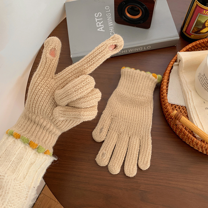 Ins Sugar Bean 한국 양모 니트 장갑 겨울 여성 두꺼운 터치 스크린 손가락 따뜻하게 유지 사이클링스토어 가기