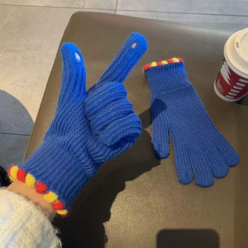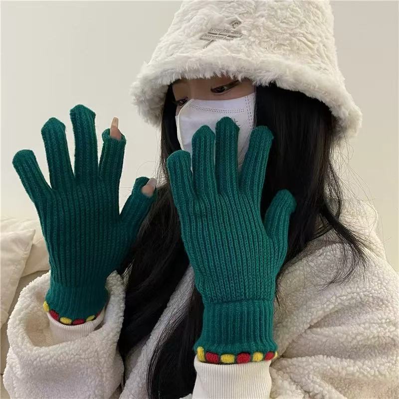 Ins Sugar Bean 한국 양모 니트 장갑 겨울 여성 두꺼운 터치 스크린 손가락 따뜻하게 유지 사이클링