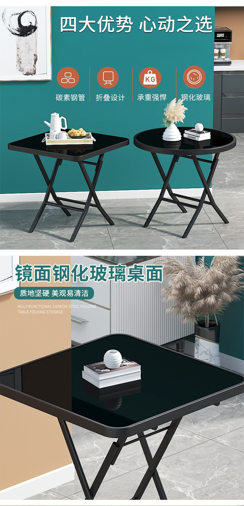 강화 유리 데스크탑 간단한 접이식 식탁 야외 피크닉 테이블 레저 캠핑 휴대용 테이블 접이식 원형 테이블