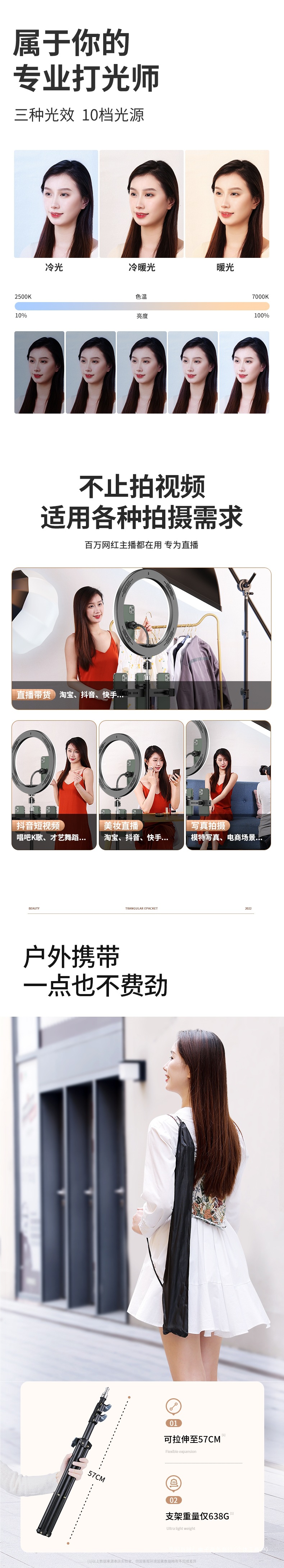 • 다음은 2025년 신형 [멀티머신 뷰티 시리즈] 탄소강 브라켓 - 멀티 플랫폼 라이브 방송 + 피부 미백 보조등입니다.