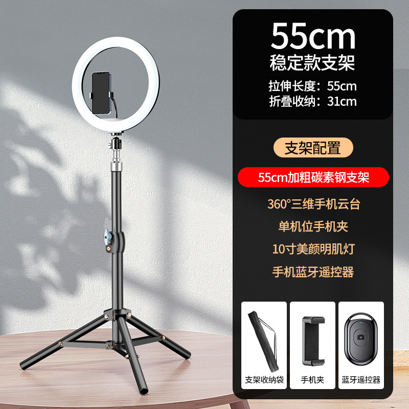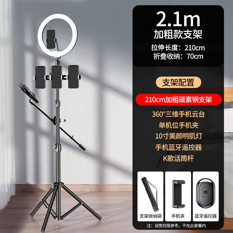 휴대폰 라이브 방송 스탠드, 셀카봉 삼각대, 보조광 포함, 야외 휴대용 촬영 스탠드, 범용 비디오 플로어 스탠드스토어 가기