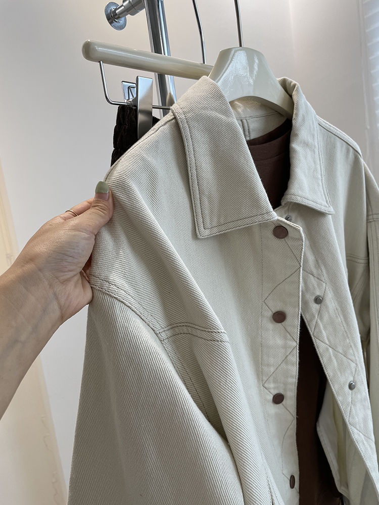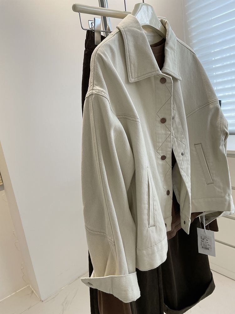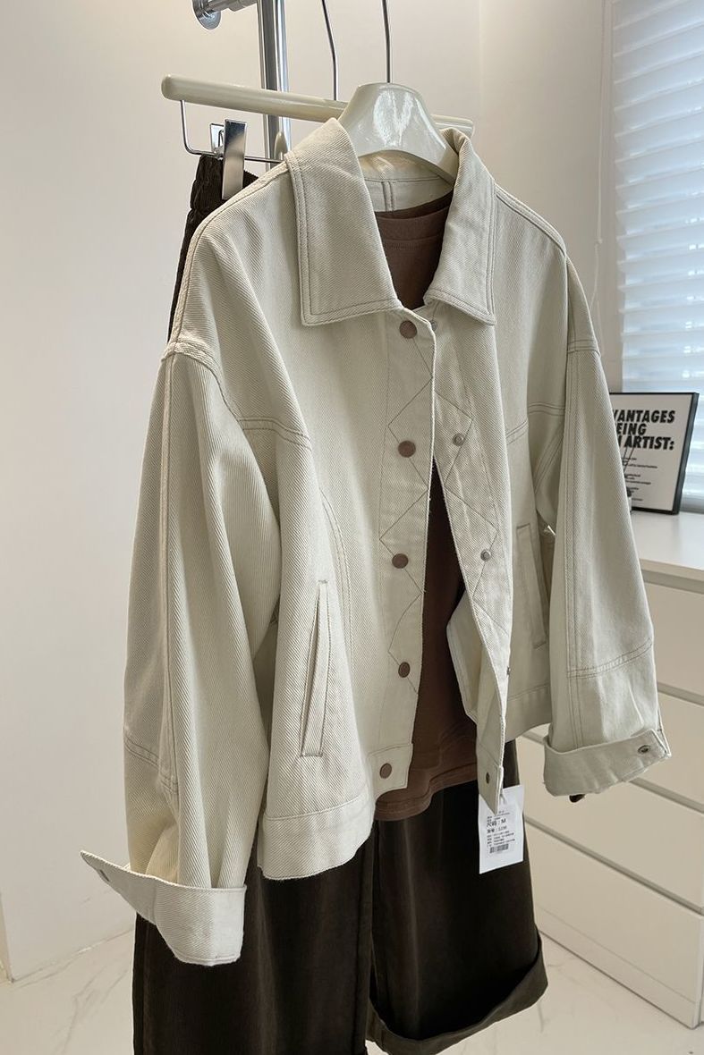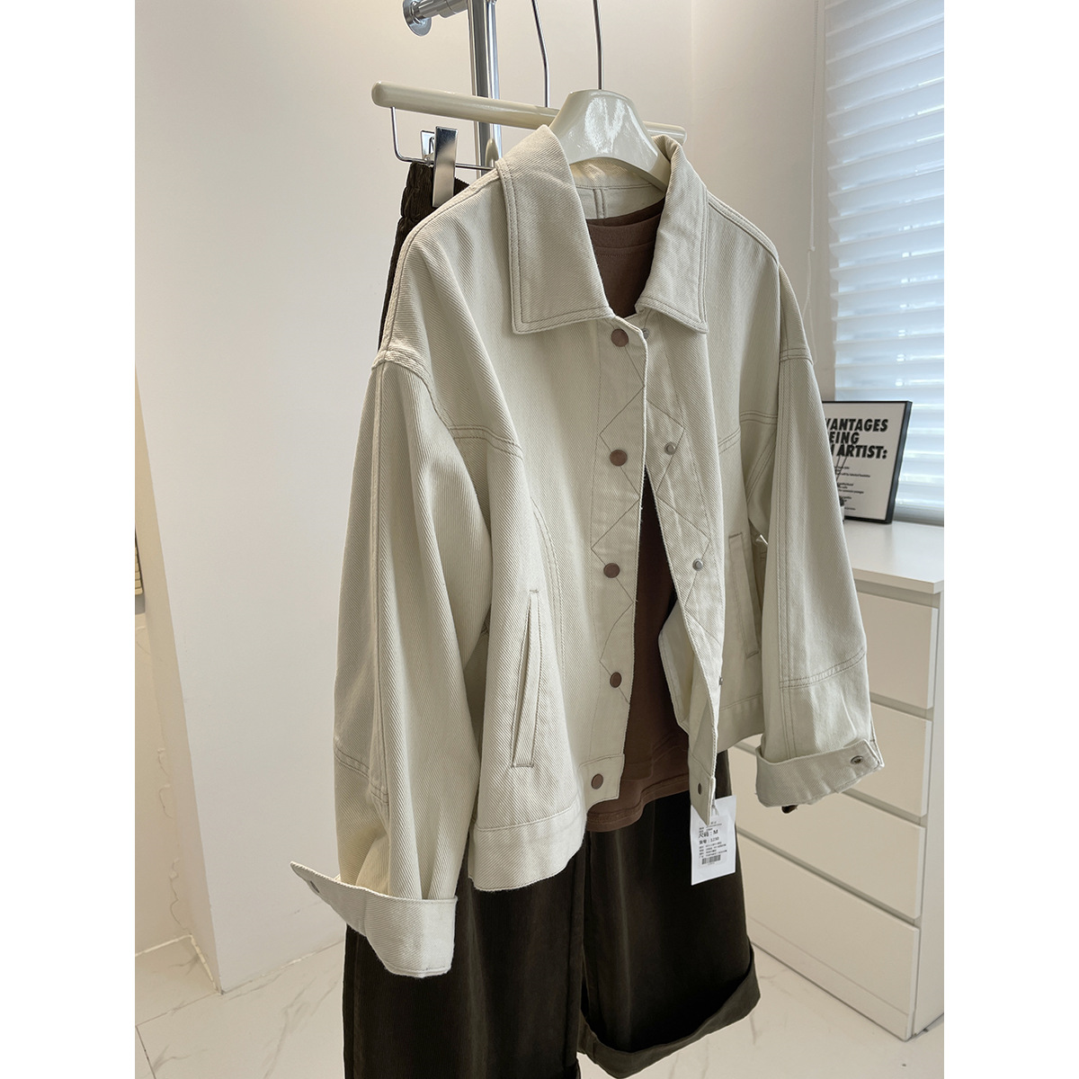 봄과 가을 오픈 스타일 짧은 여성 디자인 다목적 루즈 슬리밍 한국 데님 재킷 캐주얼 베이지 재킷 탑스토어 가기