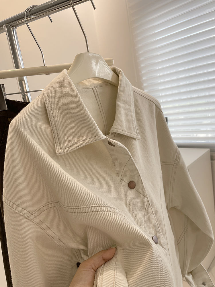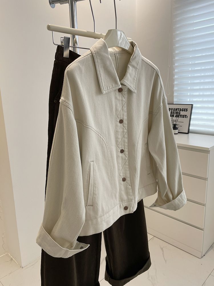 봄과 가을 오픈 스타일 짧은 여성 디자인 다목적 루즈 슬리밍 한국 데님 재킷 캐주얼 베이지 재킷 탑