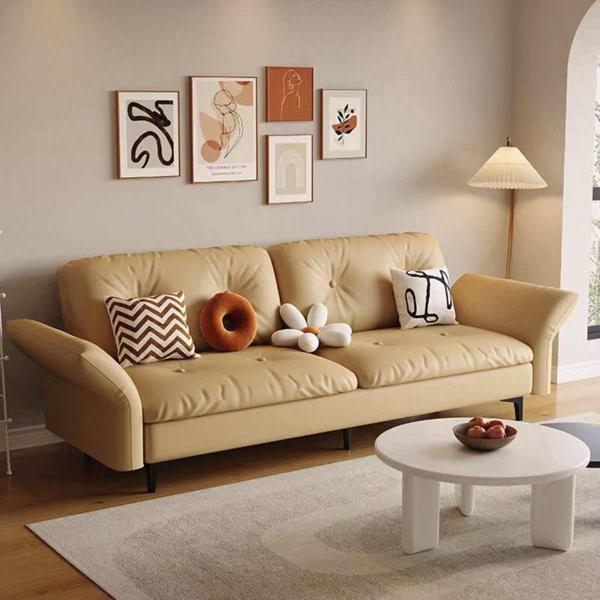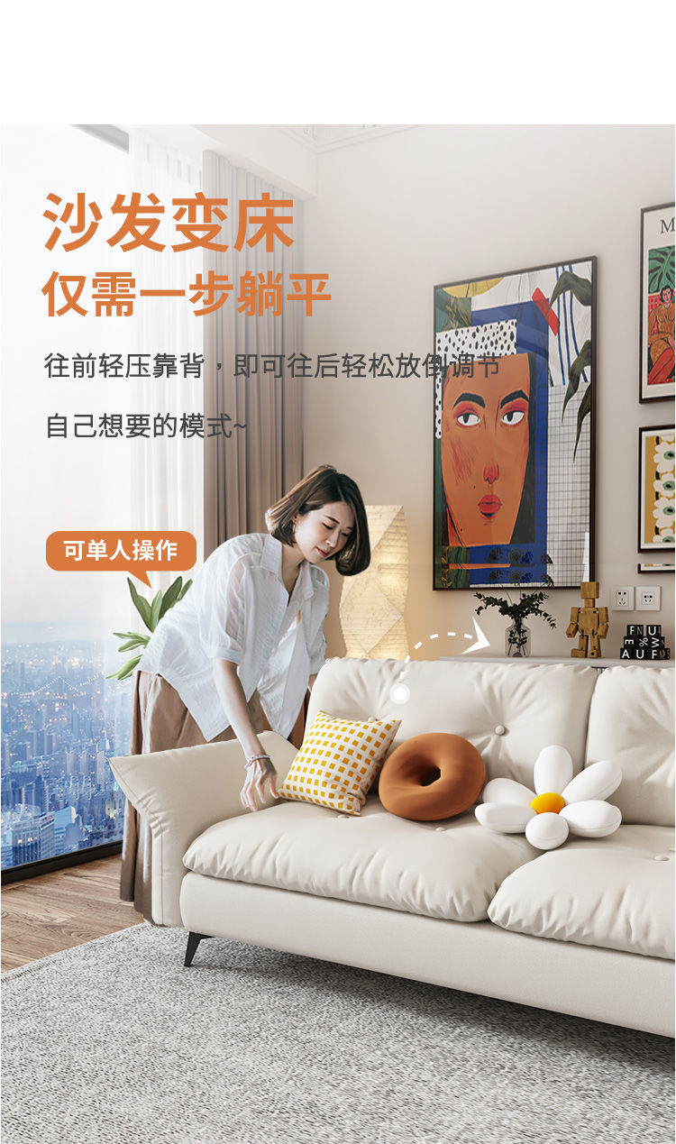 2025 새로운 스타일 간단한 노워시 소형 소파 침대 거실 임대 집 침실 접이식 패브릭 소형 소파스토어 가기