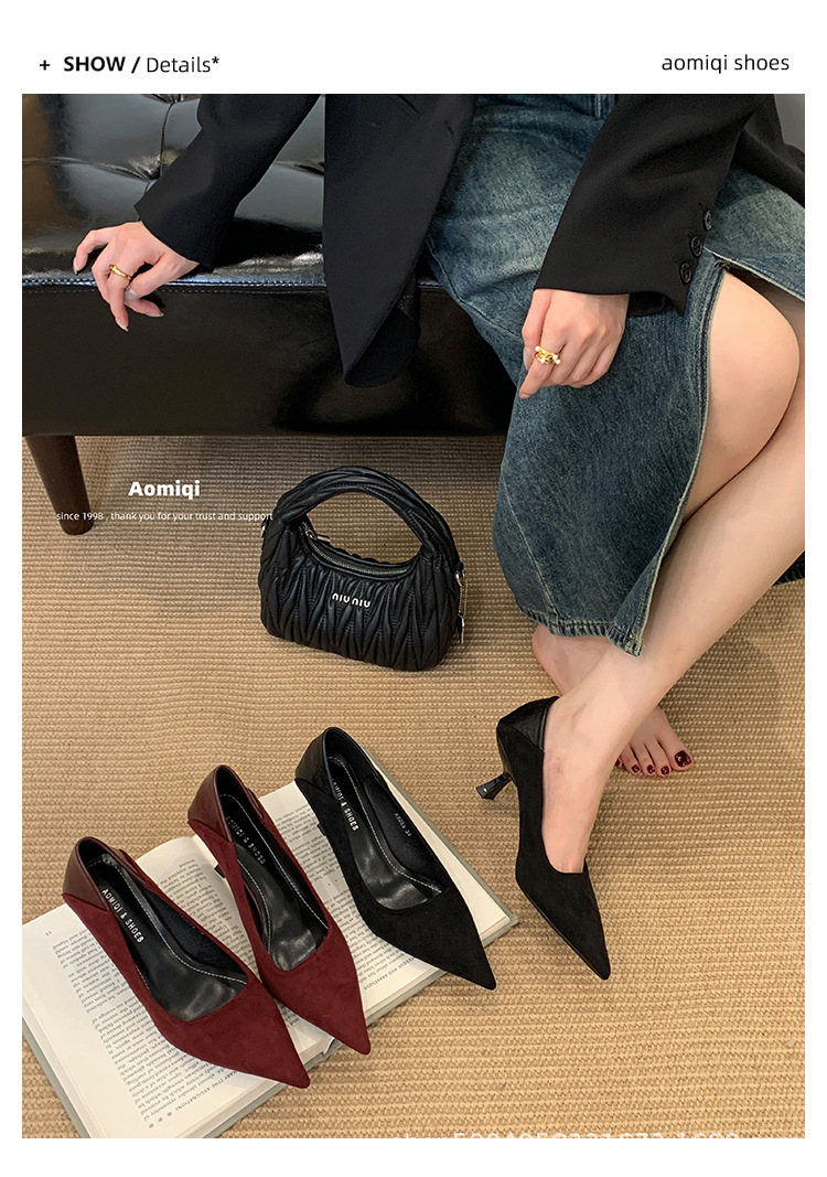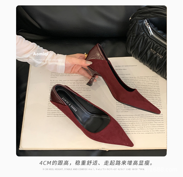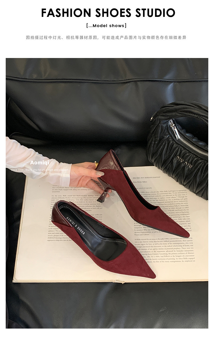 여성용 프렌치 하이힐, 스틸레토 힐, 뾰족한 빨간색 디자인, 스웨이드 틈새 섹시 기질, 여성용 반투명 웨딩 슈즈스토어 가기