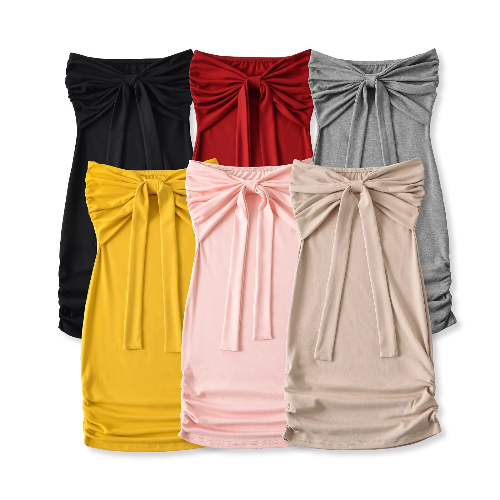 2025 새로운 여름 디자인 보우 타이 드레스 여성 섹시한 튜브 탑 스커트