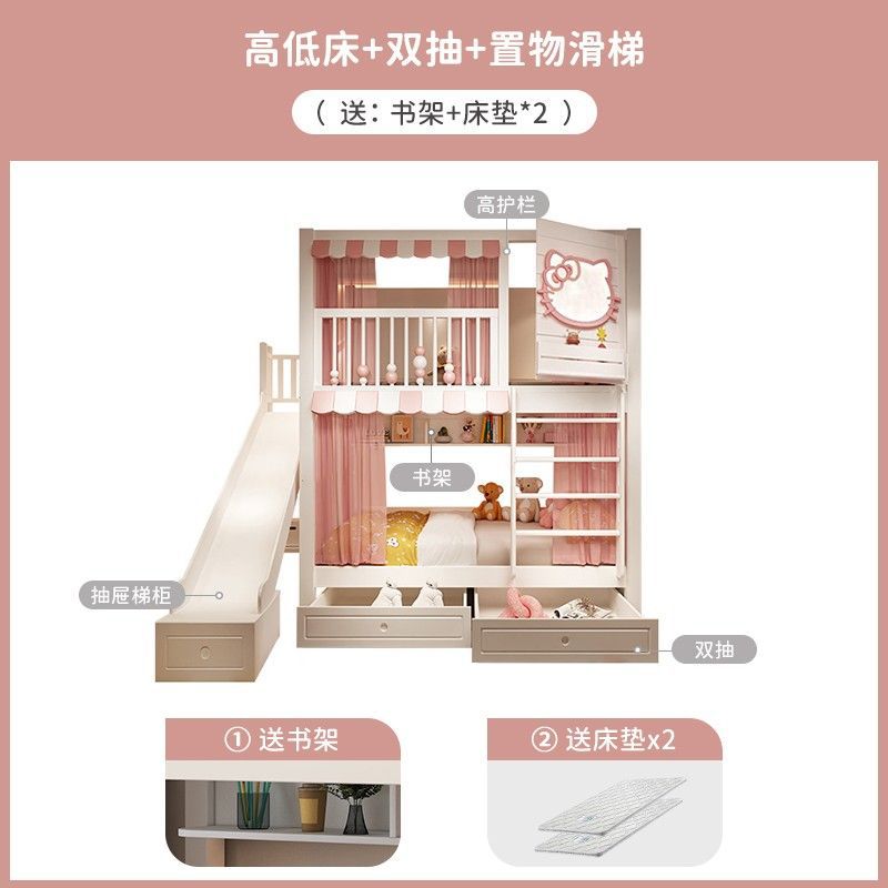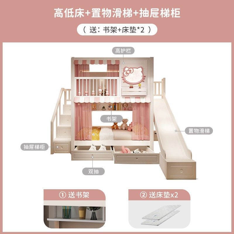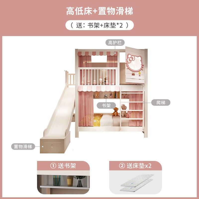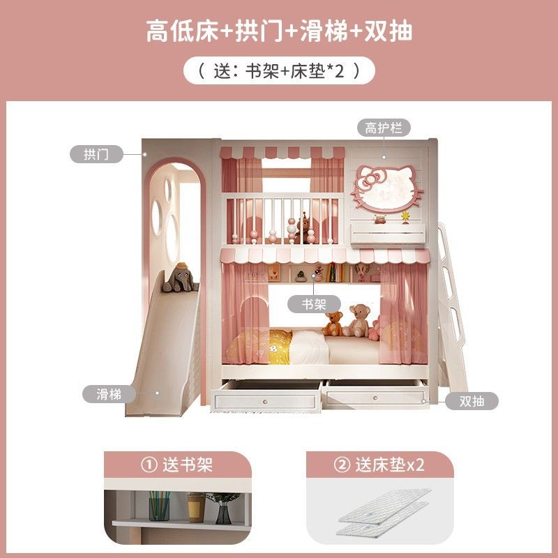 여아용 원목 이층침대, 높은 가드레일, 트리하우스, 원목 슬라이드, 이층 엄마와 아이 침대, 클라이밍 침대