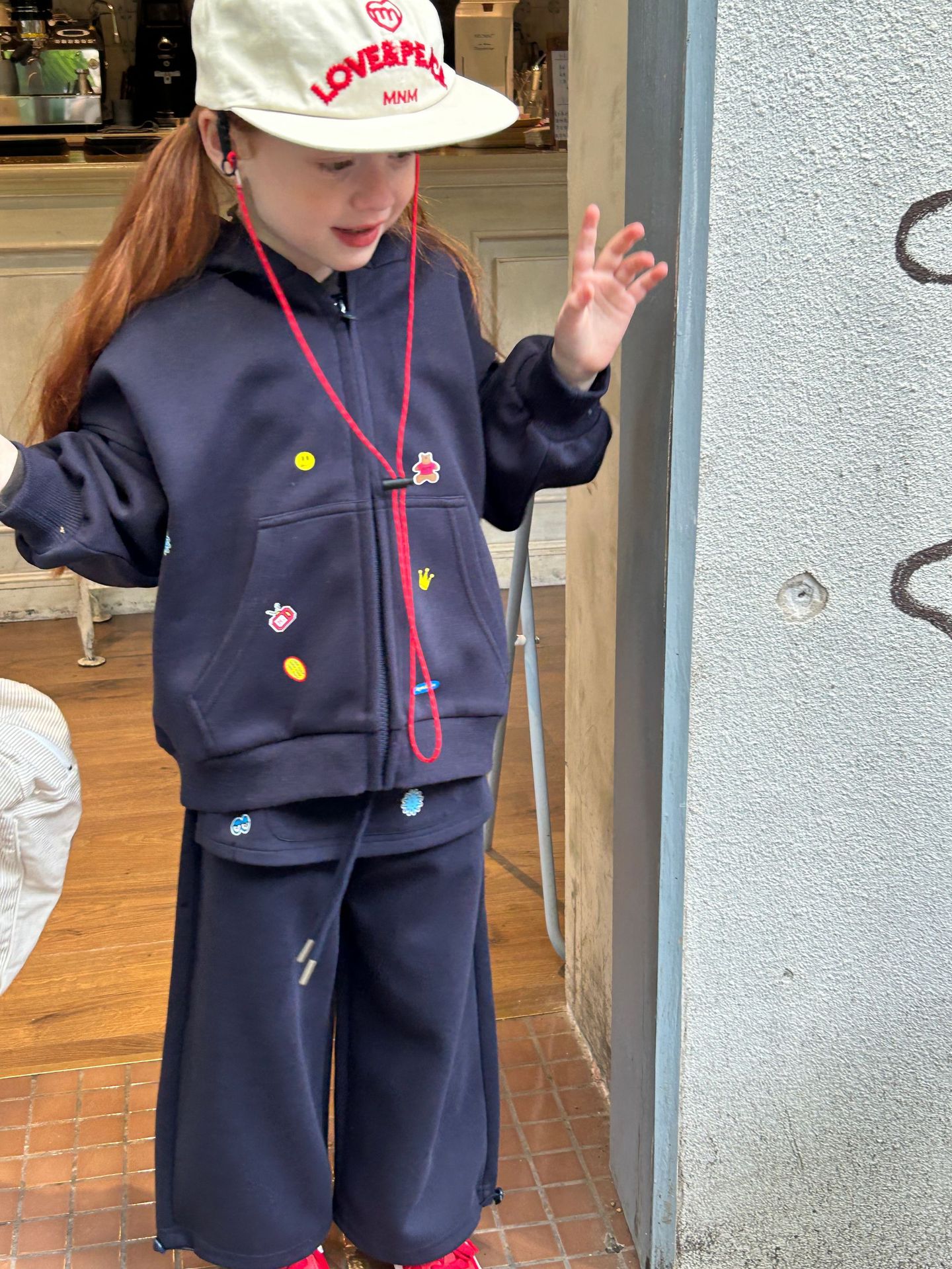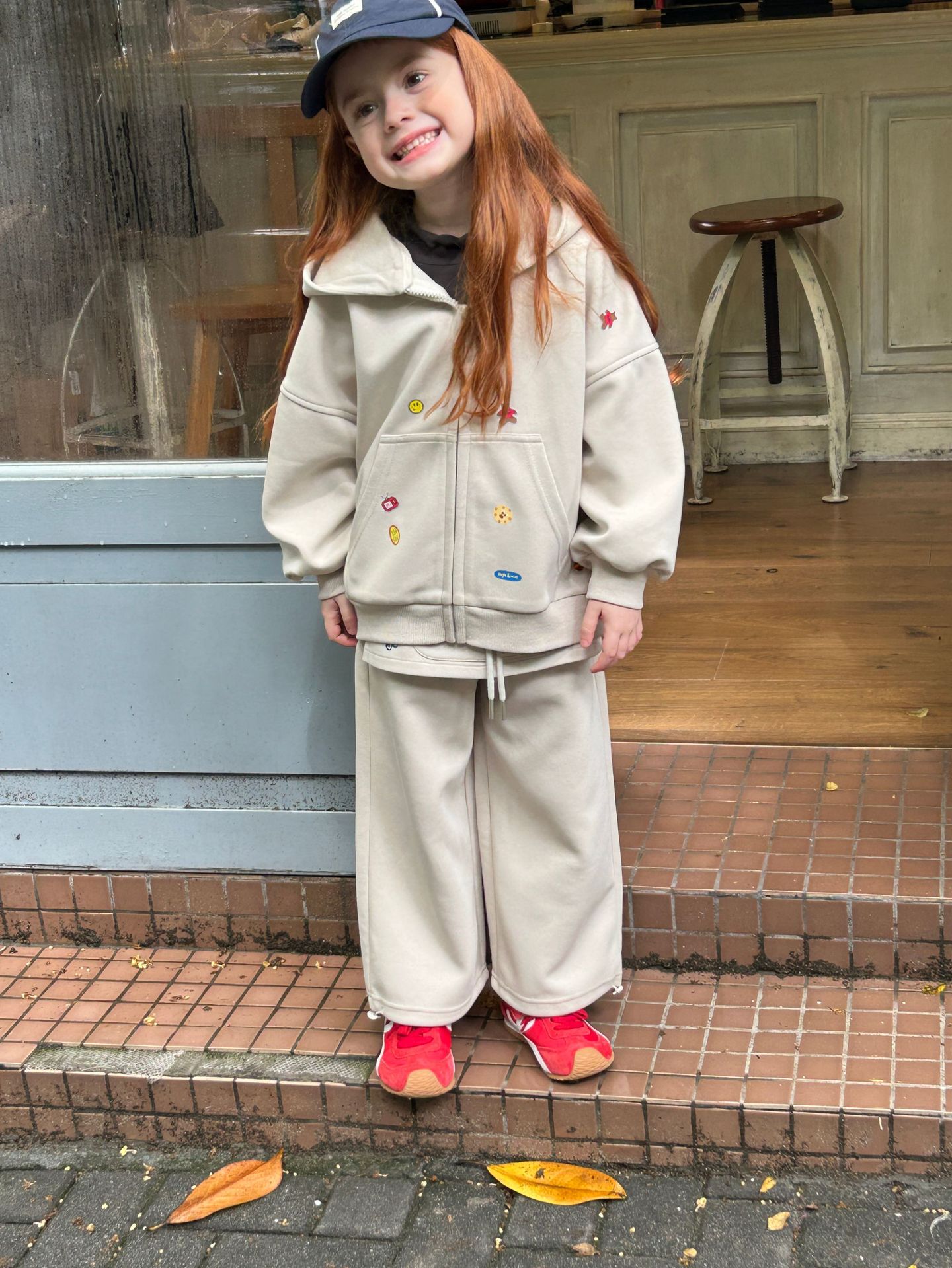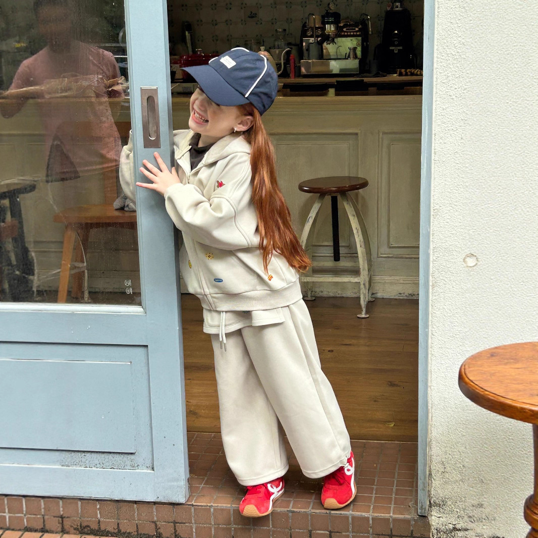 2025 새로운 가을 패션 소녀 인쇄 스티커 귀여운 후드 긴 소매 스웨터와 바지 투피스 캐주얼 슈트스토어 가기