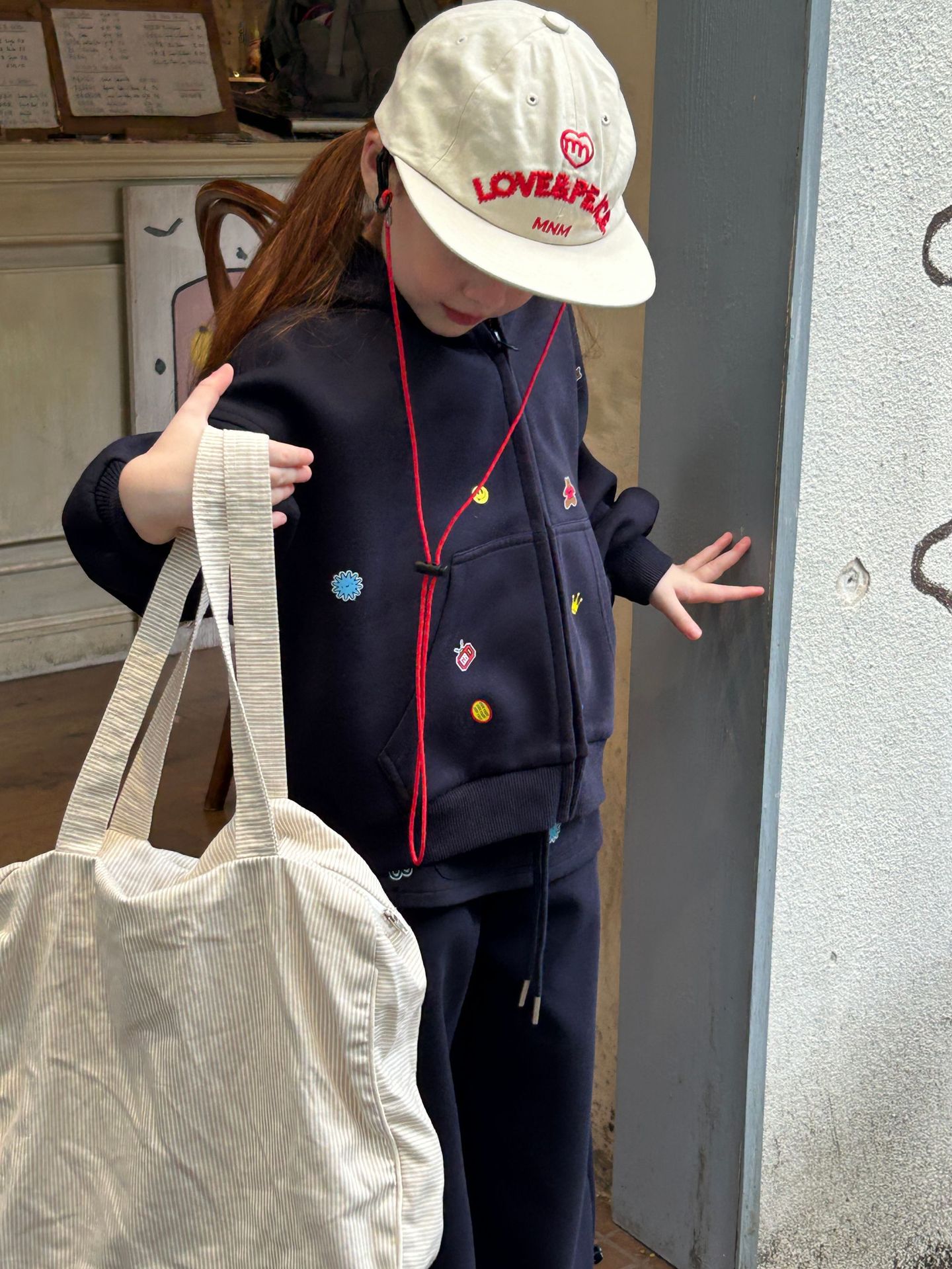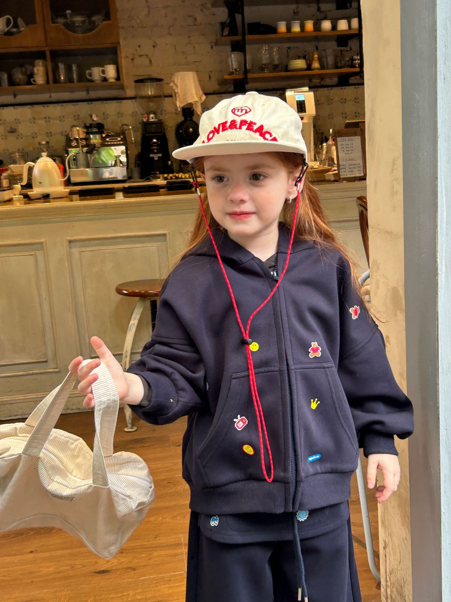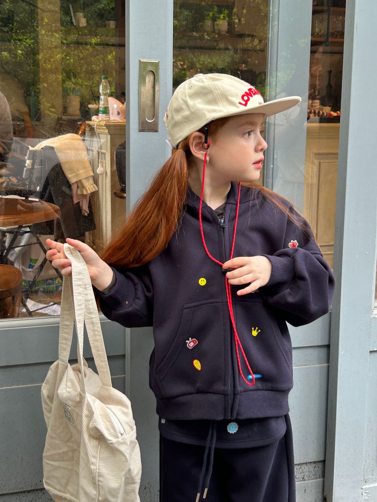 2025 새로운 가을 패션 소녀 인쇄 스티커 귀여운 후드 긴 소매 스웨터와 바지 투피스 캐주얼 슈트스토어 가기