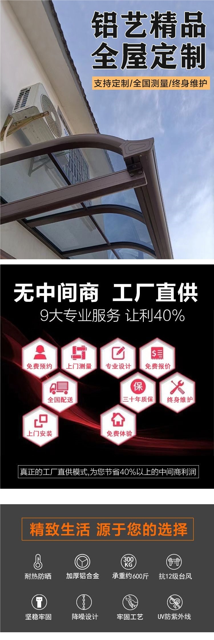 알루미늄 합금 창문, 야외 빌라 창 캐노피, 발코니 천막, 안뜰 햇빛 차단, 문 머리 및 문 천막스토어 가기