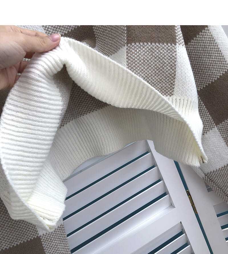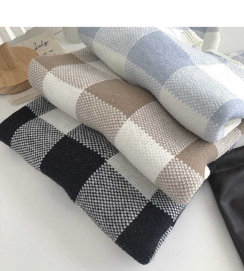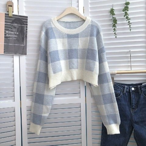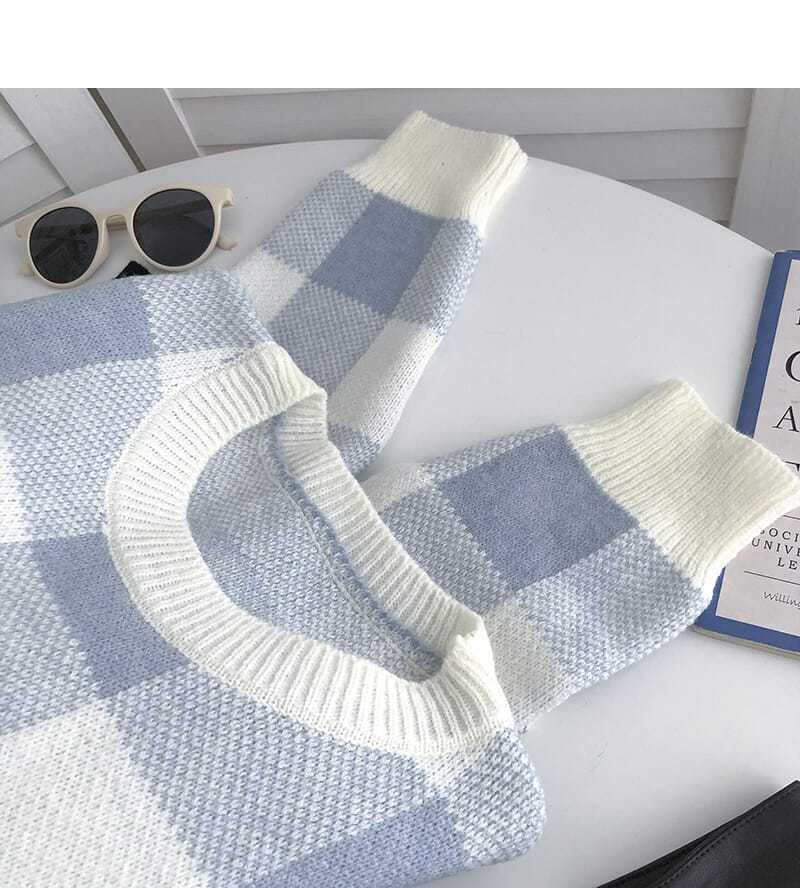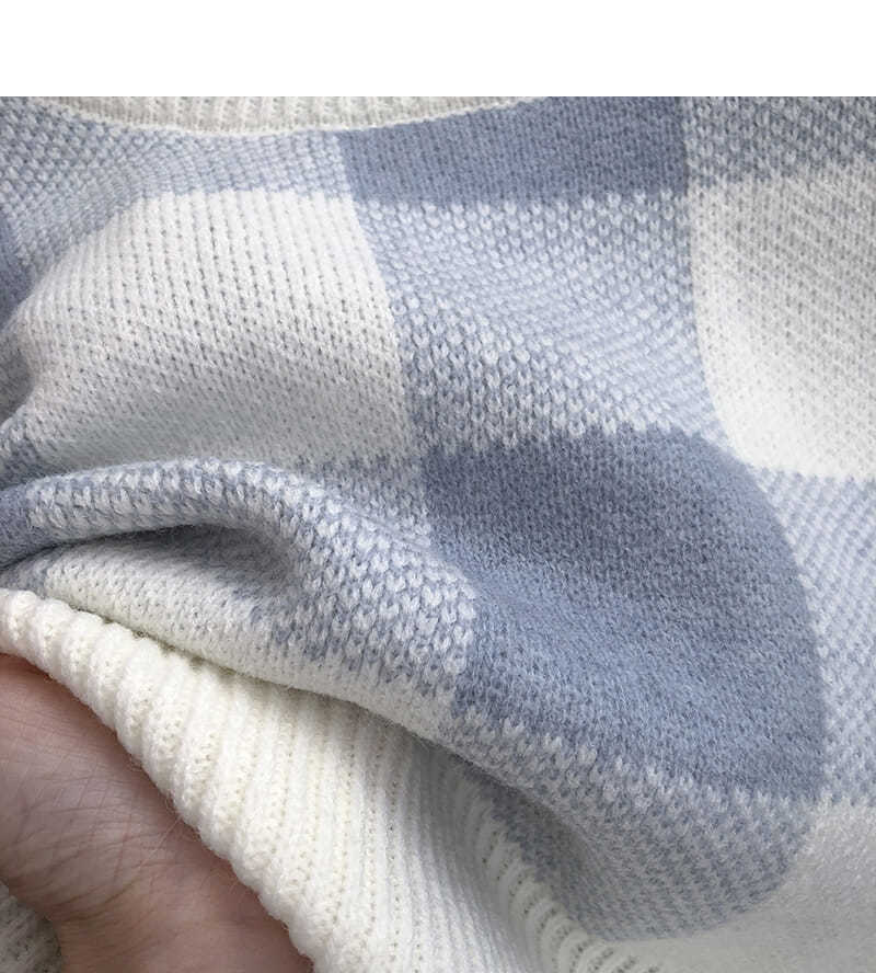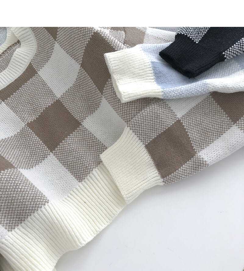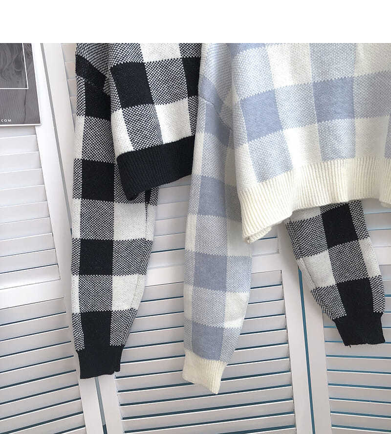 여성을위한 대형 격자 무늬 대비 색상 라운드 넥 짧은 긴팔 스웨터 2025 가을, 겨울 한국 스타일 다목적 풀오버 슬리밍 스웨터스토어 가기