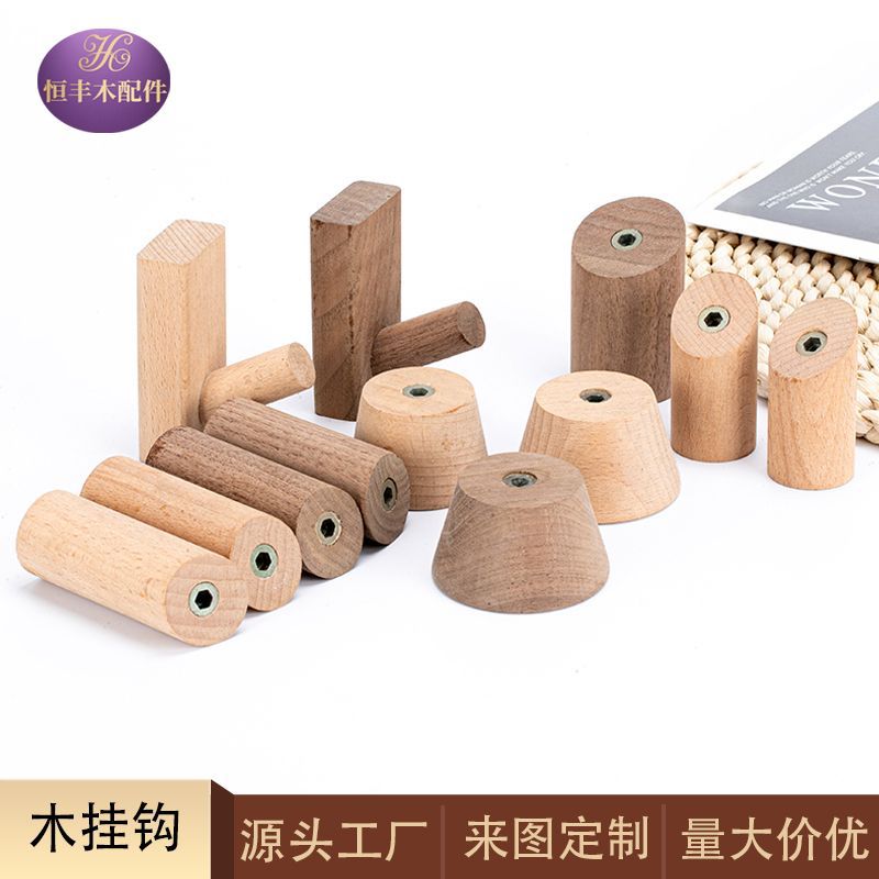 창의적이고 심플한 나무 후크, 호두나무 벽걸이 옷걸이, 문 뒤 현관 옷걸이, 원목 후크 대량 공급
