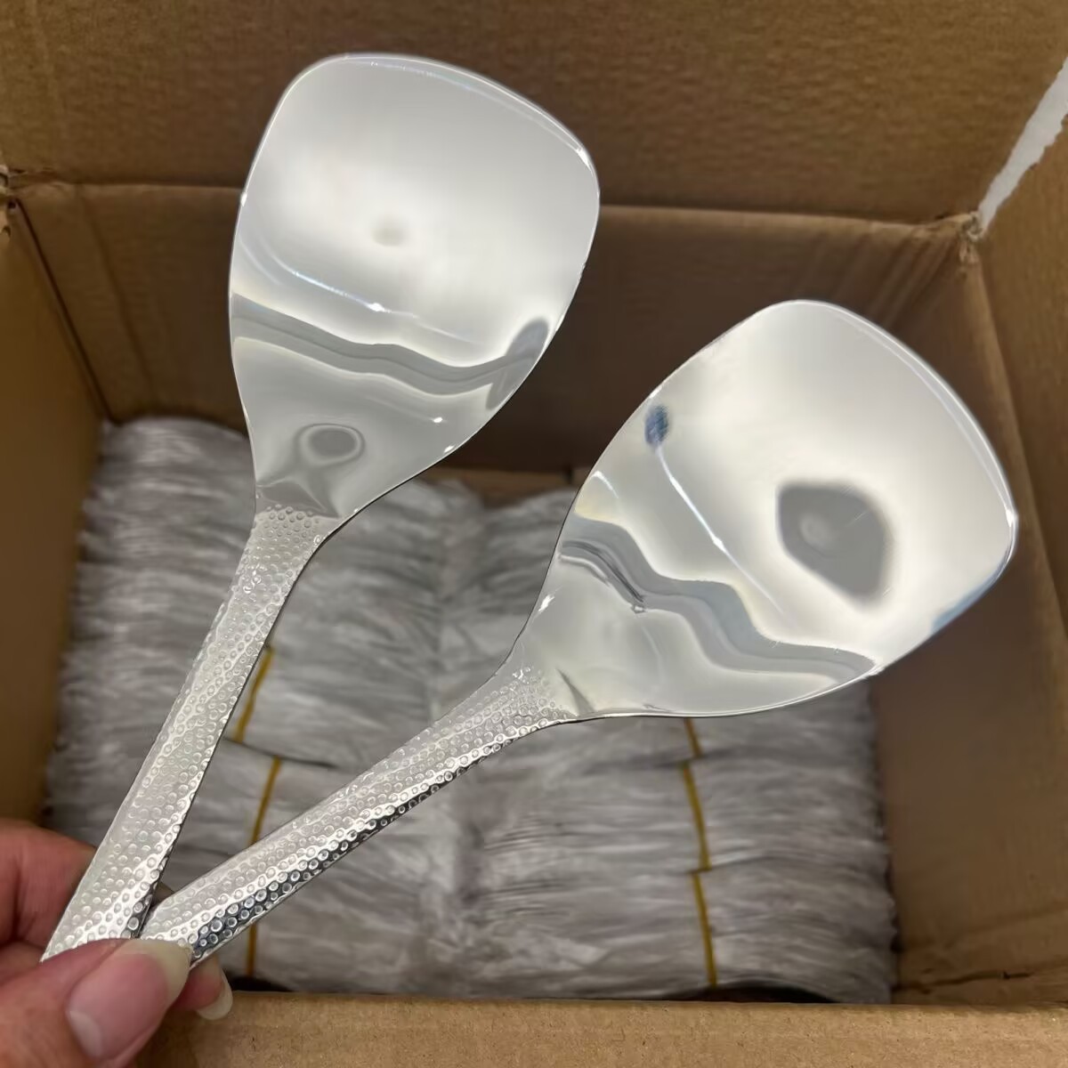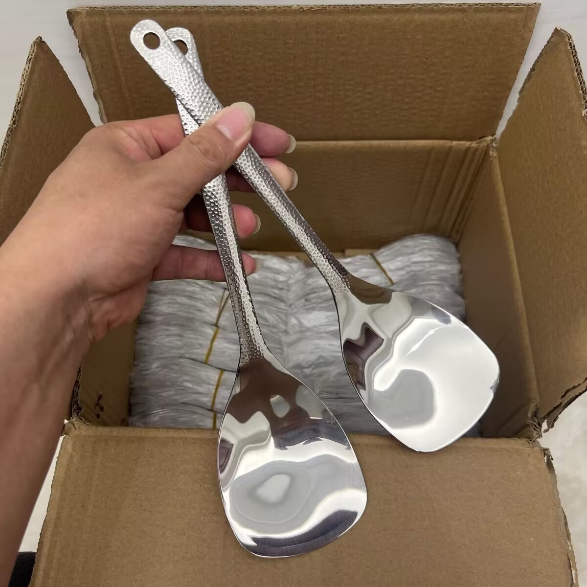 단조 스테인레스 스틸 작은 주걱 두꺼운 손잡이 요리 주걱 냄비 요리 주걱 미끄럼 방지 손잡이 요리 주걱 도매