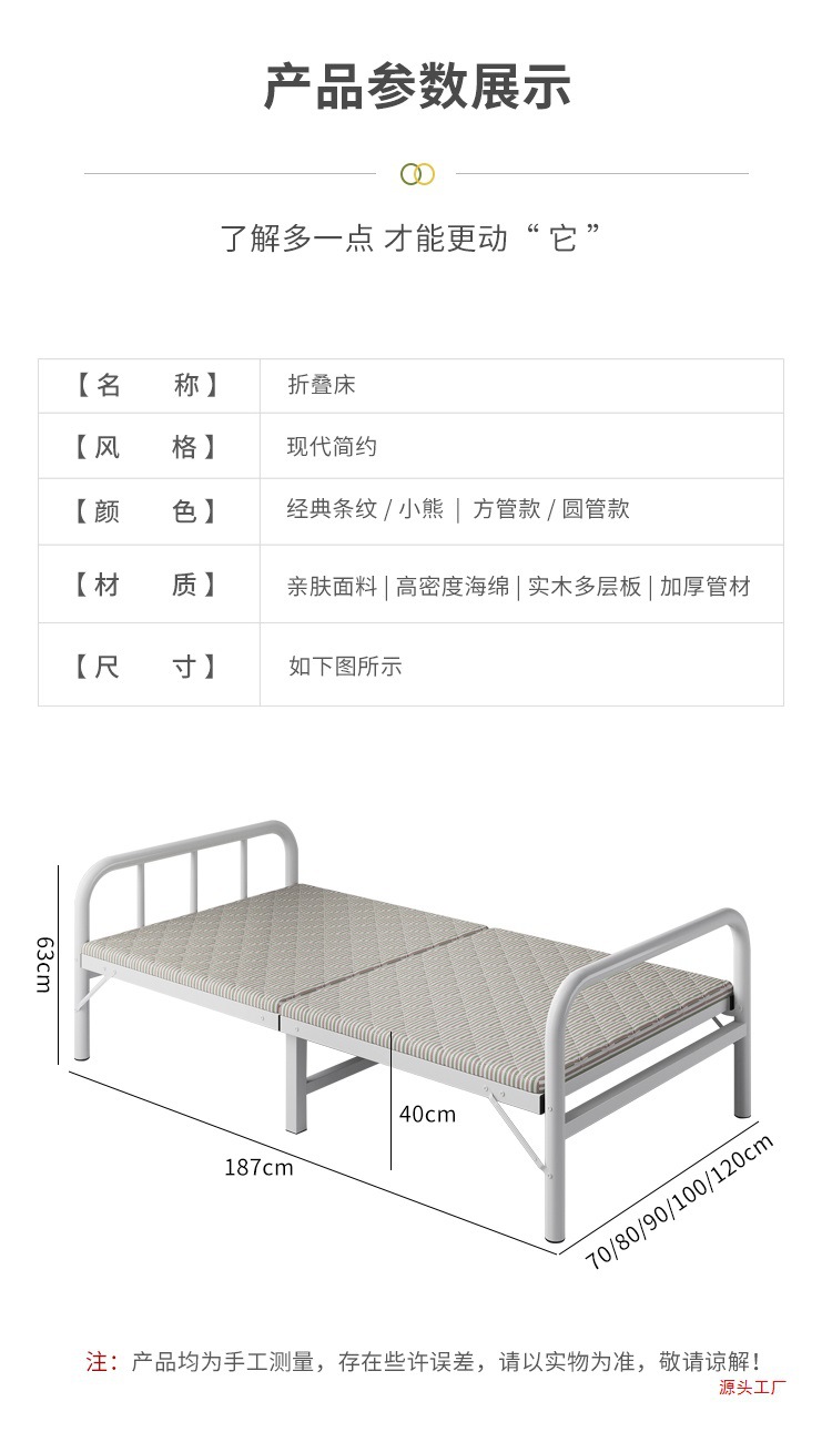 접이식 침대 홈 오피스 간이 침대 싱글 낮잠 침대 성인 휴대용 하드 보드 동반자 유아용 침대 철제 침대