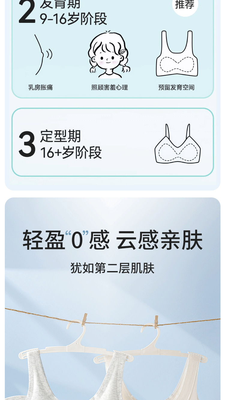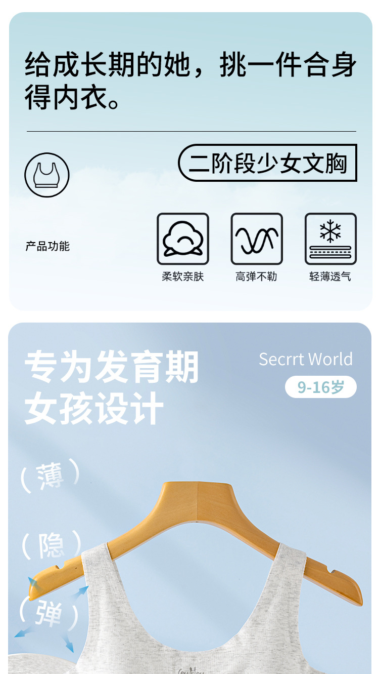 발달기 소녀의 심리스 속옷, 중, 고등학생의 고정 컵 스포츠 충격 방지 조끼, 편안하고 통기성이 좋은 브라스토어 가기