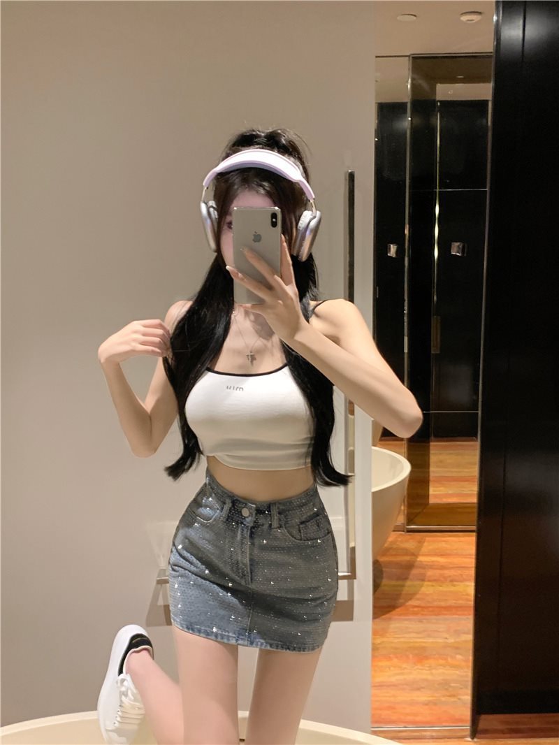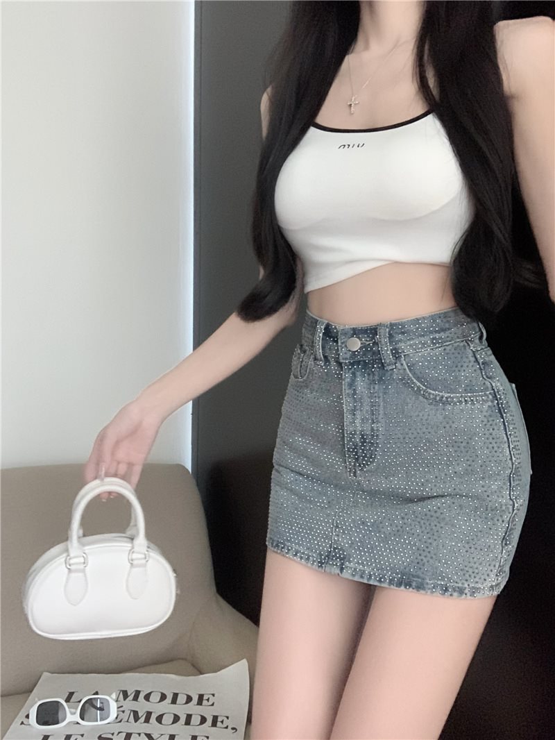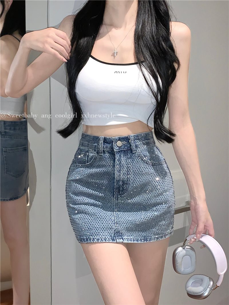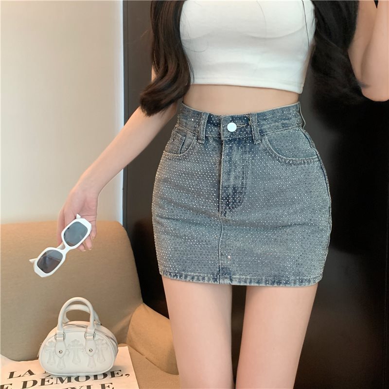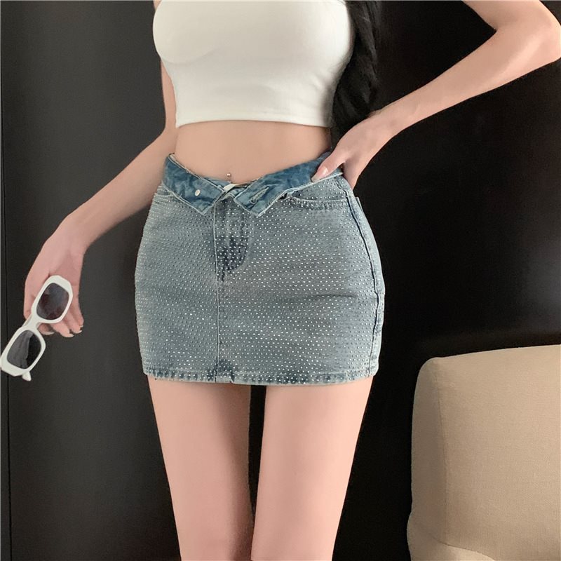 여름 여성을 위한 패셔너블한 반짝이는 다이아몬드 데님 스커트, 핫한 하이웨이스트 슬리밍 힙 스커트, 트렌디한 숏 스커트 85490