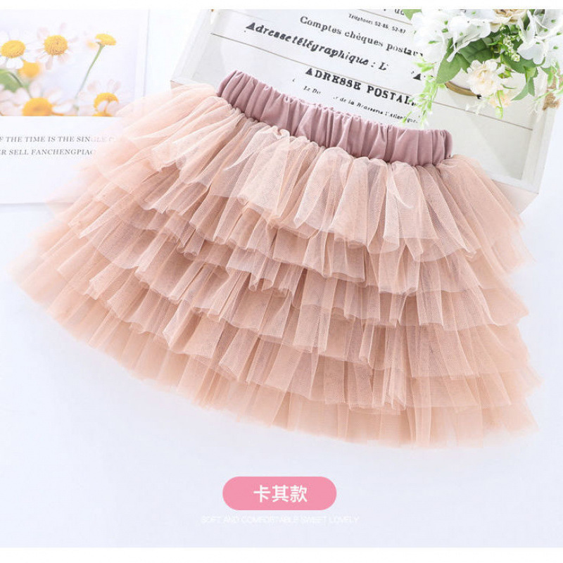 Rj3 소녀 퍼프 스커트 봄과 여름 중형 어린이 메쉬 춤추는 어린 소녀 레이스 케이크 어린이 스커트